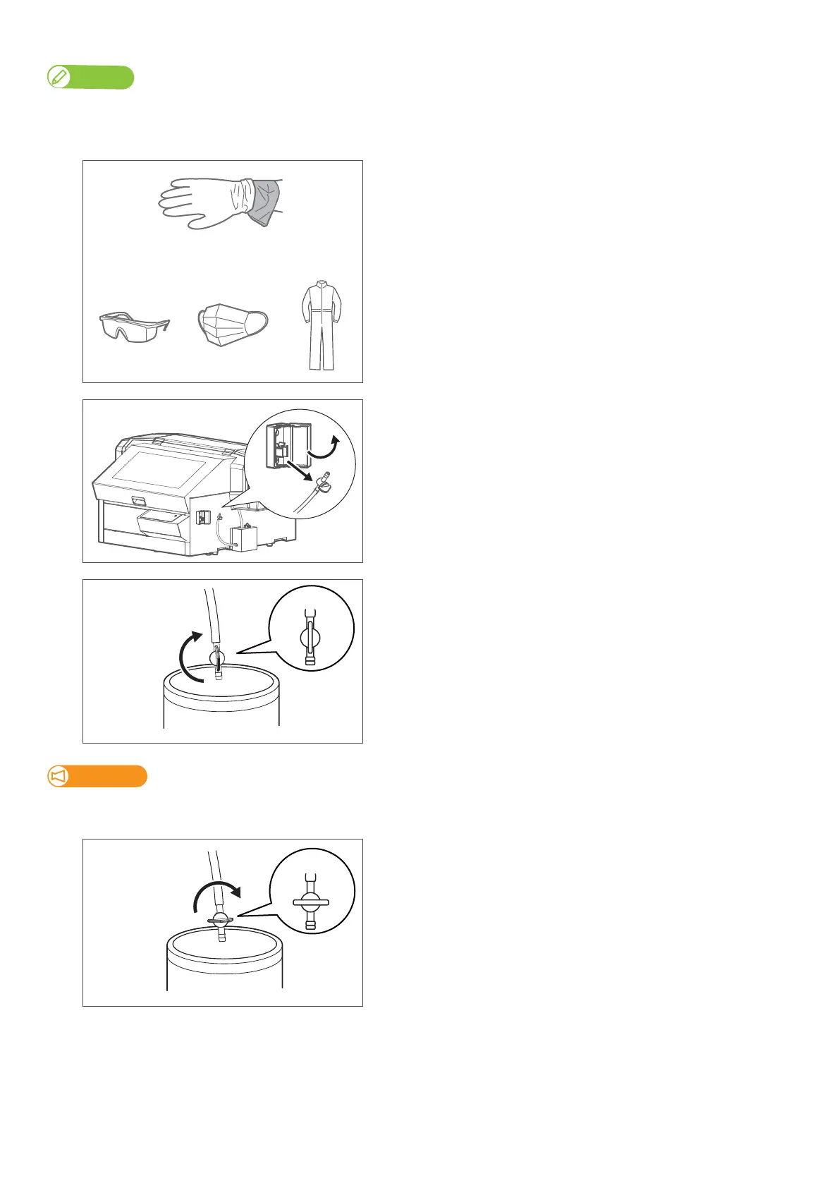 Make sure to put the tip of the drain tube valve in the empty container to drain waste ink.