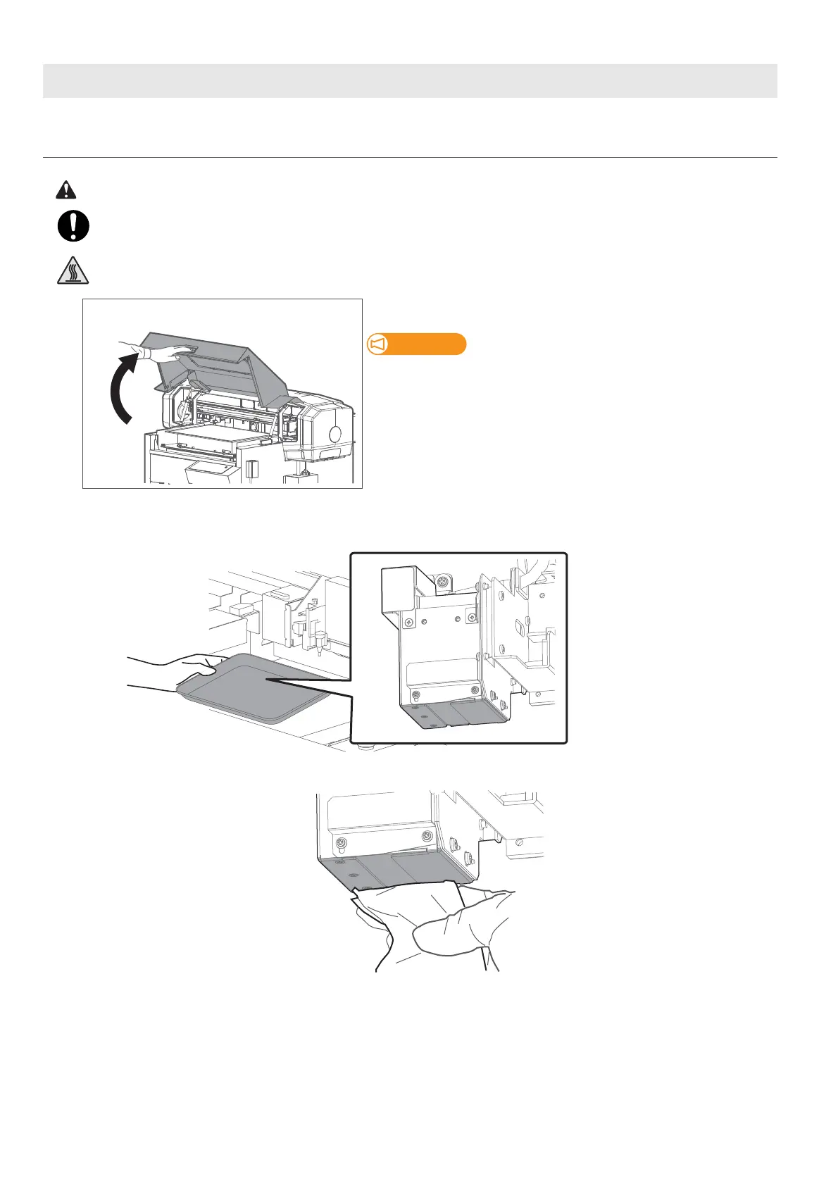 Look in the stainless tray to check for ink or dust on the UV-LED lamp.