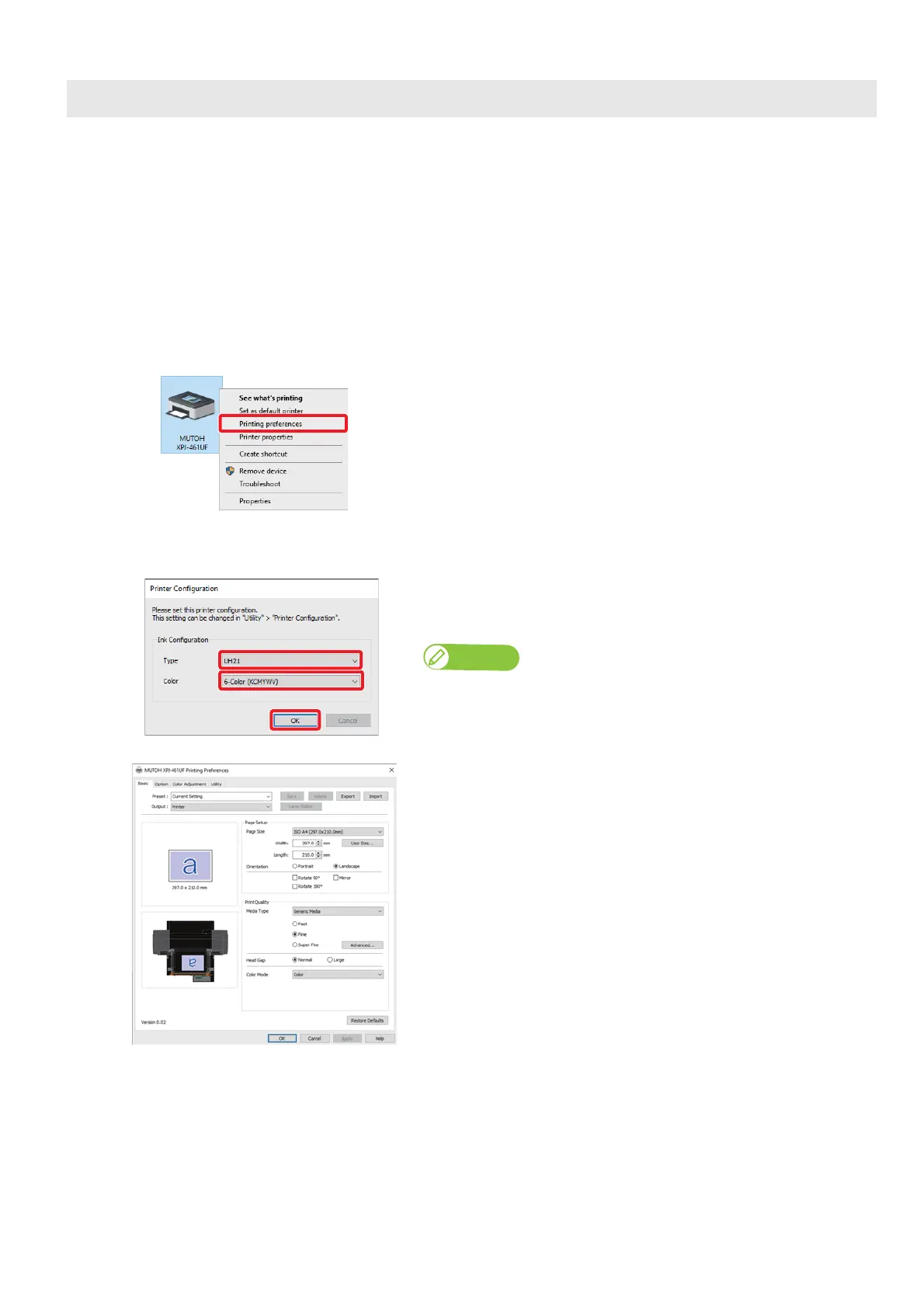 • If you selected the wrong ink configuration, go to [Utility] > [Printer Configuration]