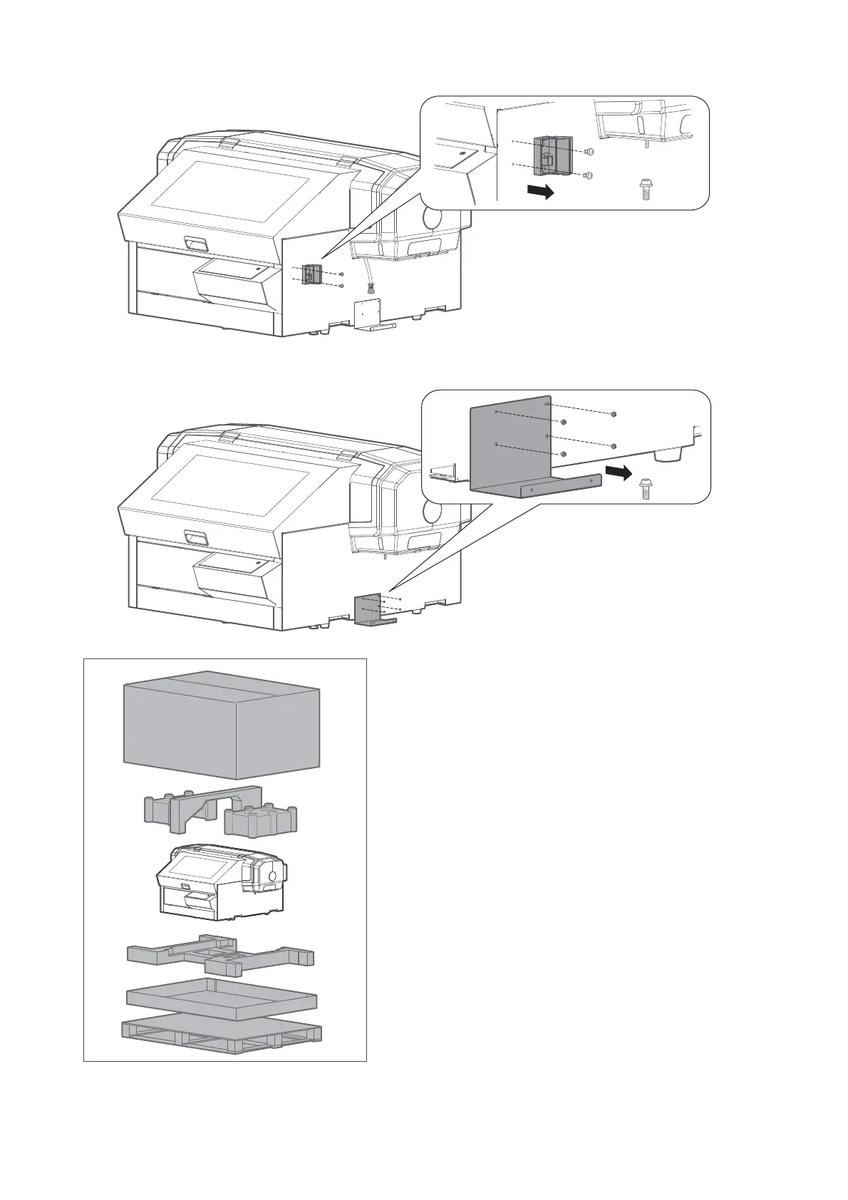 Remove four screws (M3 × 6) on the waste ink tank holder to remove the holder from the printer.