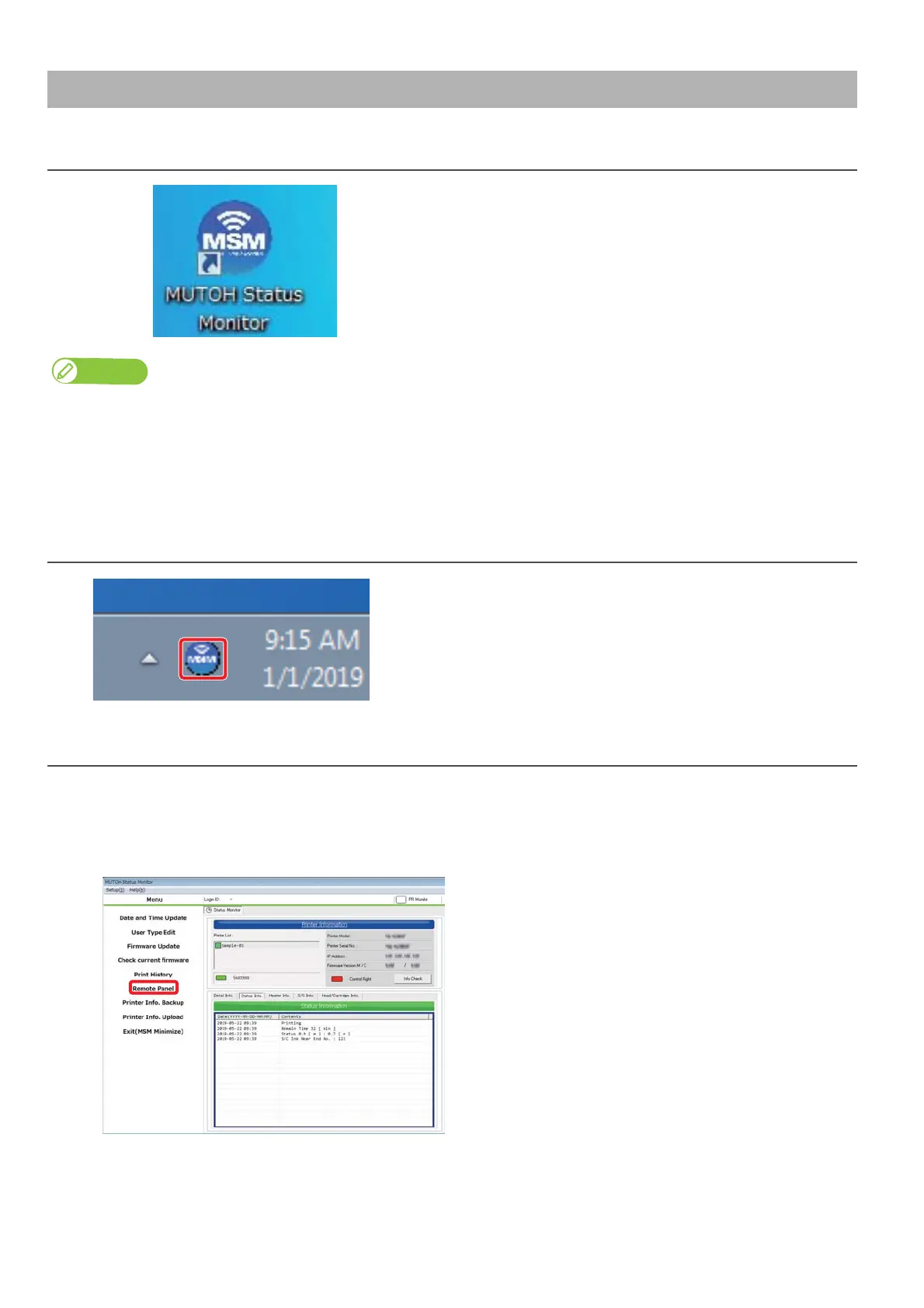 Launching/Displaying/Exiting MUTOH Status Monitor (MSM)