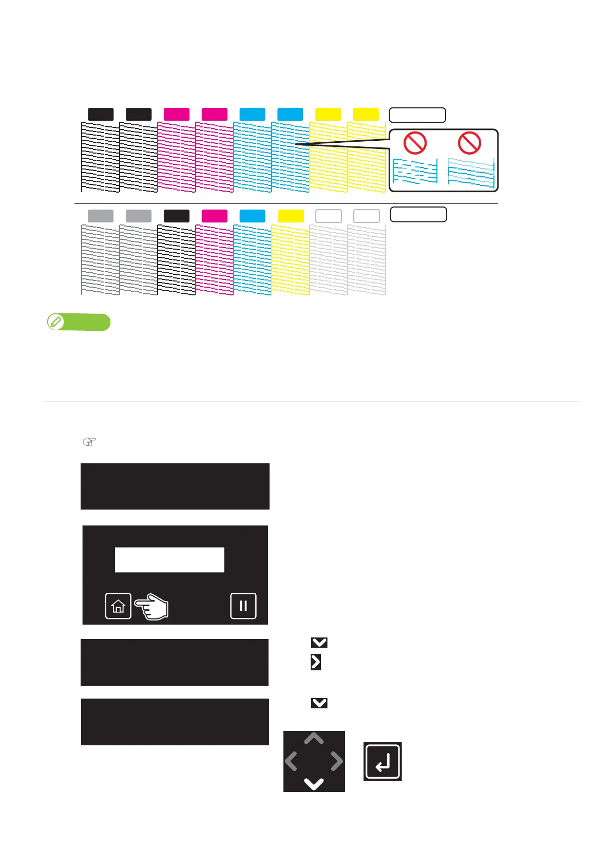 • The figure below are examples of the Nozzle Check patterns.