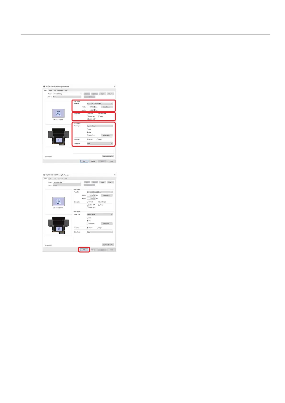 • Set [Page Size], [Orientation] and [Print Quality].