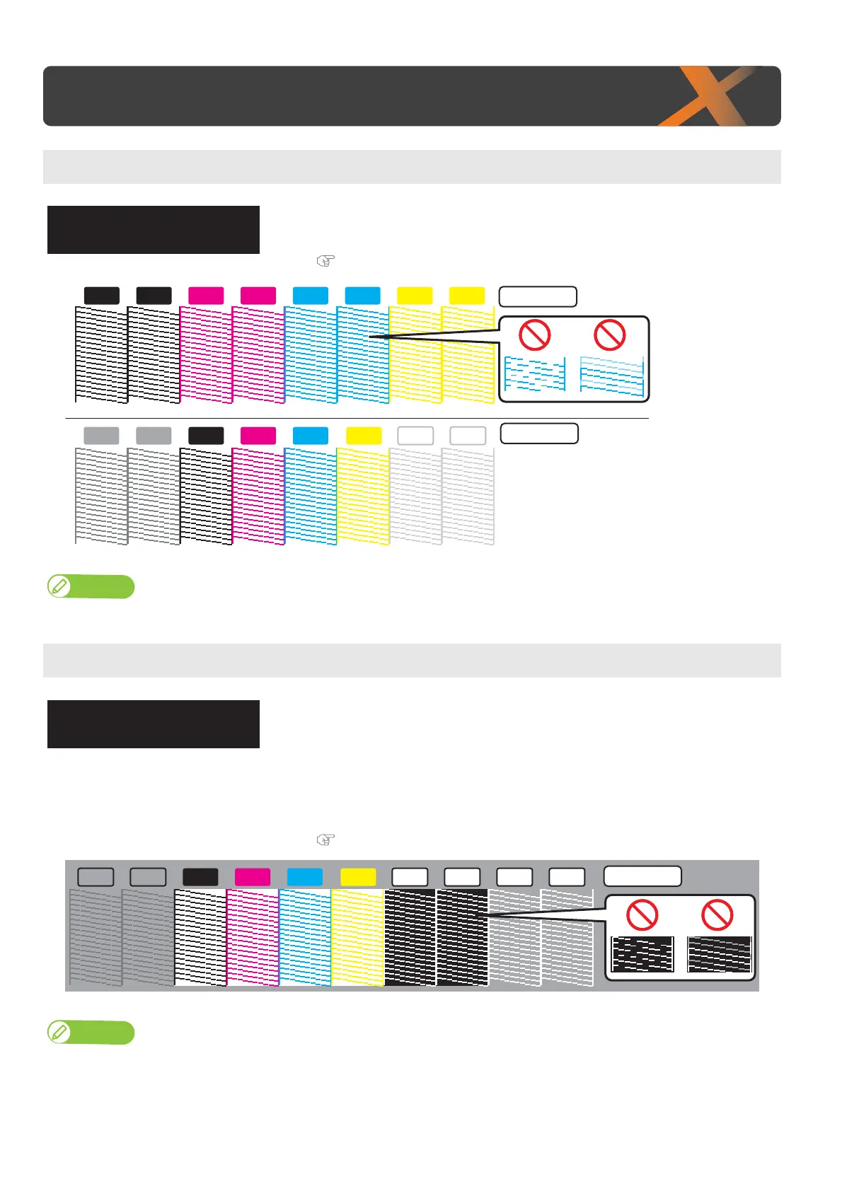 The background for some of the nozzle check pattern is printed in color so that