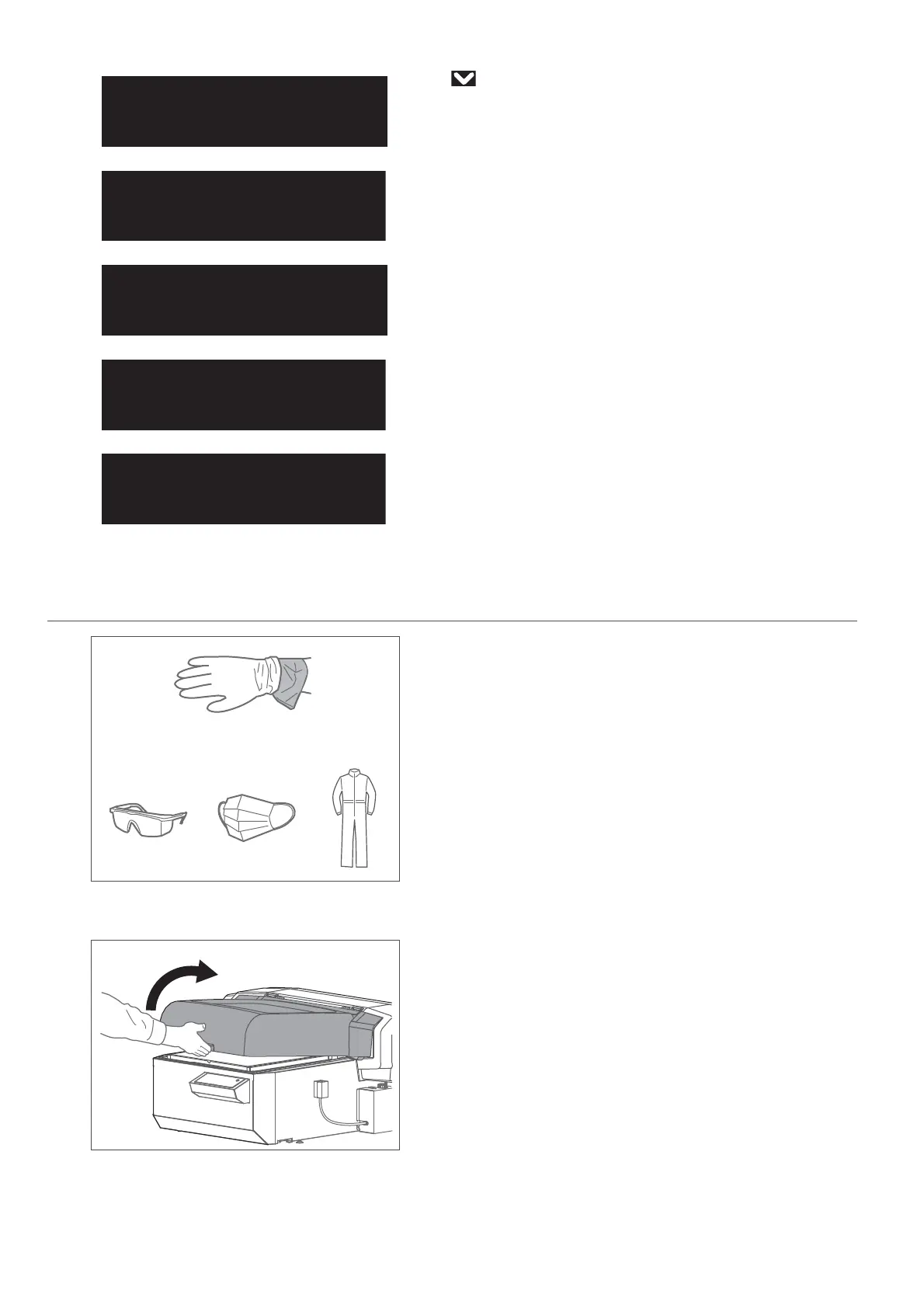 • Wear personal protective equipment such as goggles, protective mask or