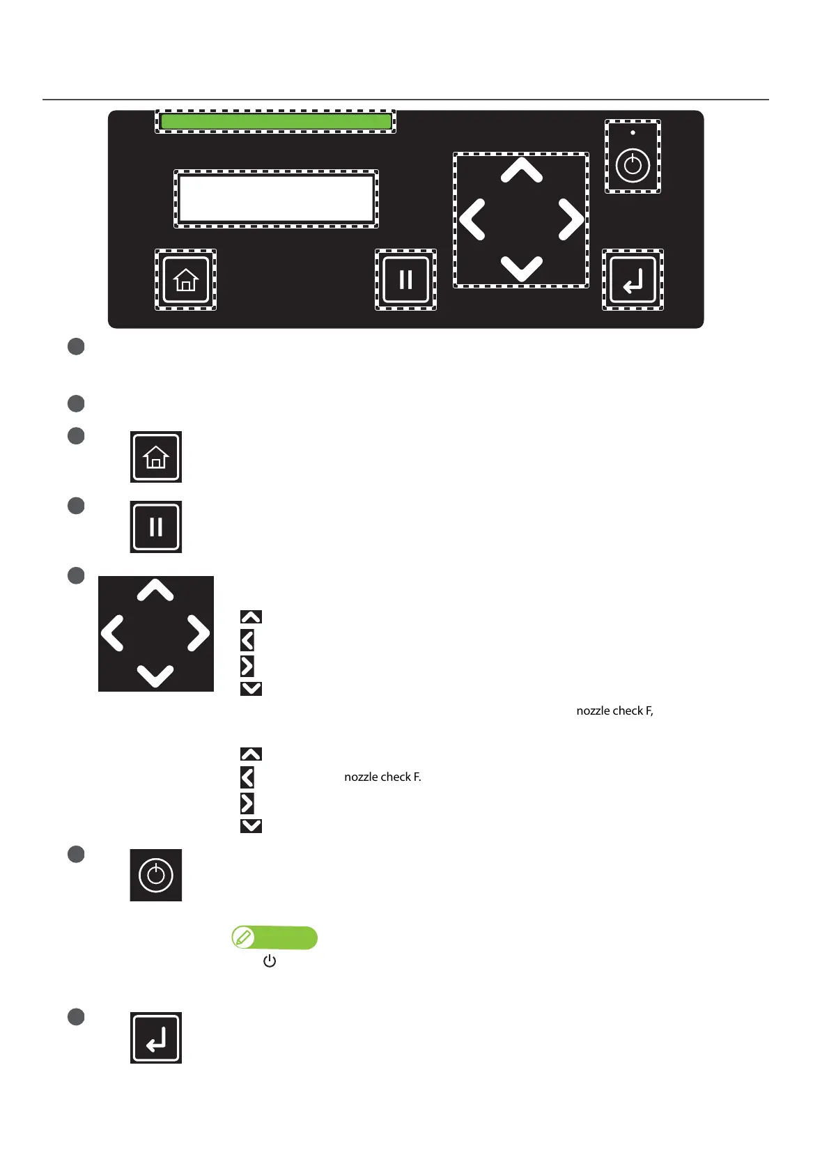 While the printer is in standby mode, it is used to feed media, run a nozzle check F, or perform head
