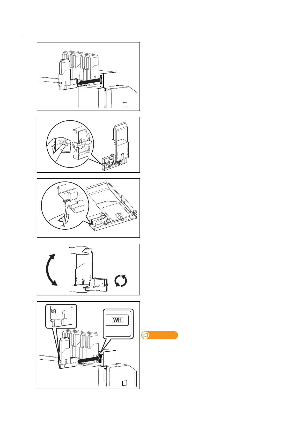 Tilt high-capacity ink pack adapters, use cleaning stick provided with