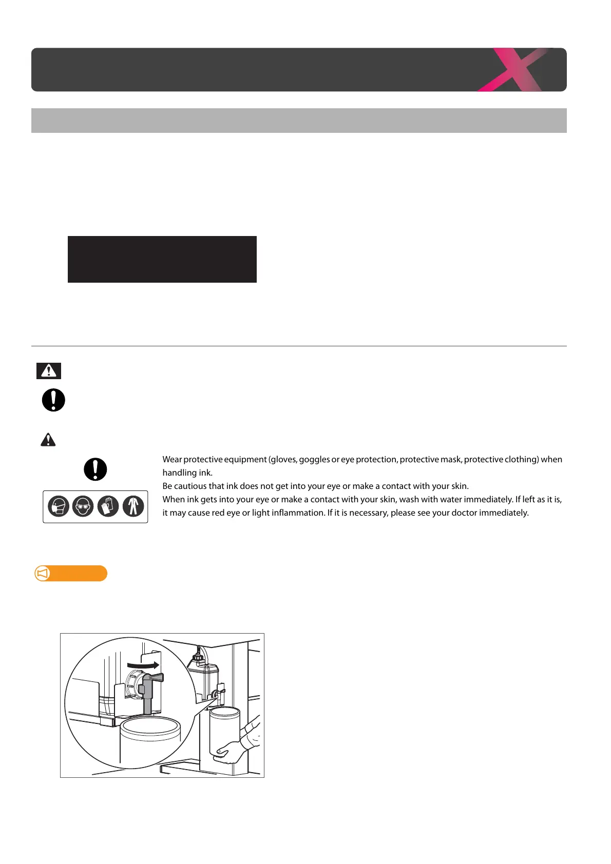 Be cautious that ink does not get into your eye or make a contact with your skin.