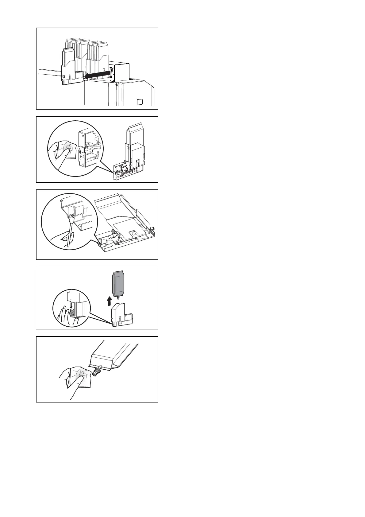 Tilt high-capacity ink pack adapters, use cleaning stick provided with