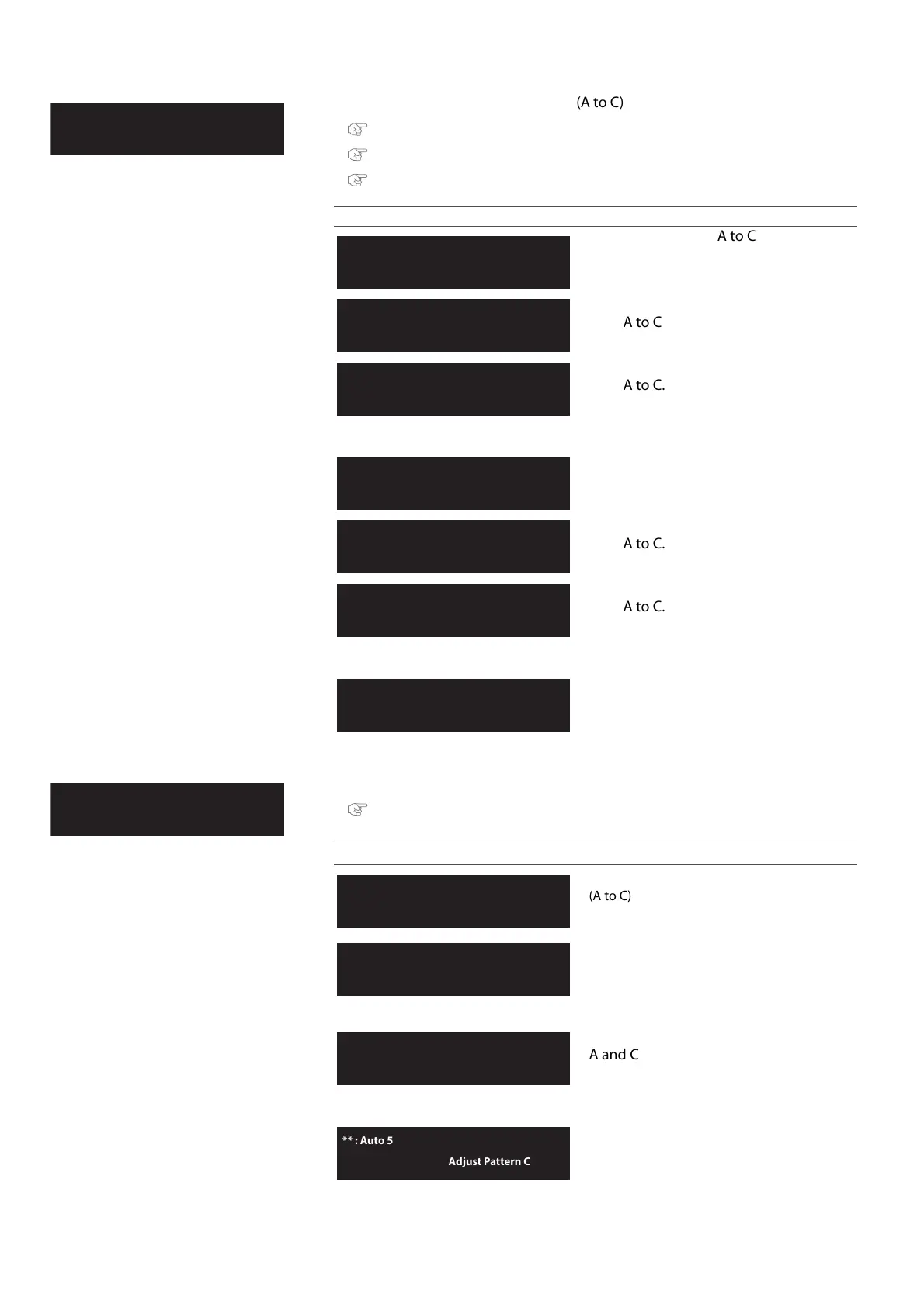 Perform adjustment for all patterns (A to C).