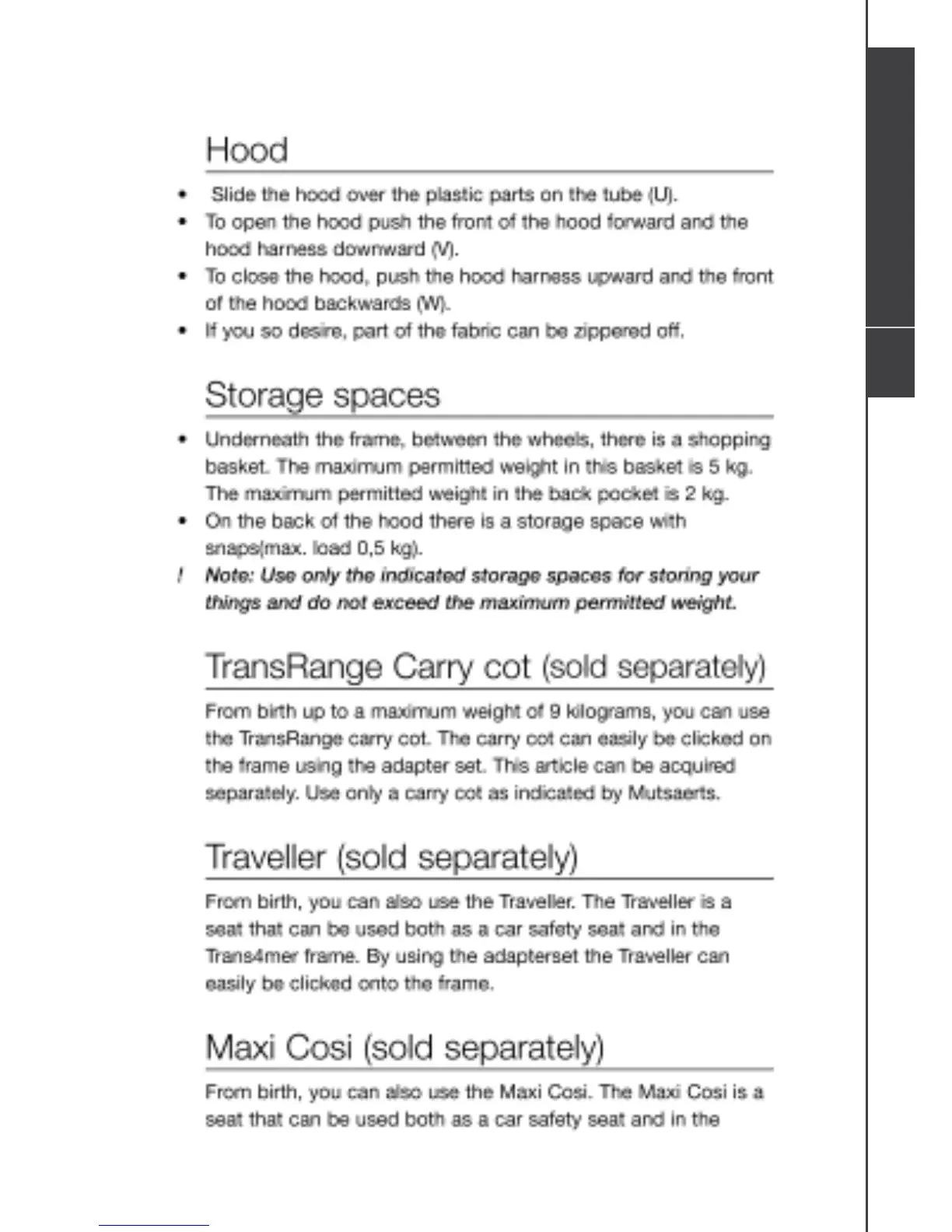 Mutsy Trans4mer - Hood; Storage Spaces; Transrange Carry Cot; Traveller