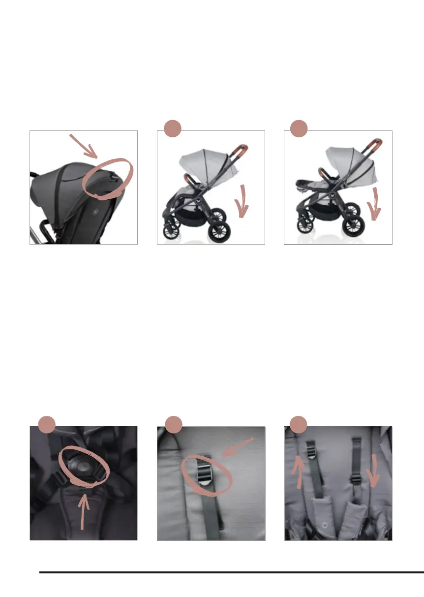 / Pull the plastic buckle down to adjust the seat to a lying position (picture 11B).