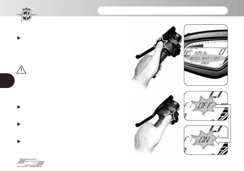lità “QUICK SHIFT”. Il display mostra lo stato di attiva-