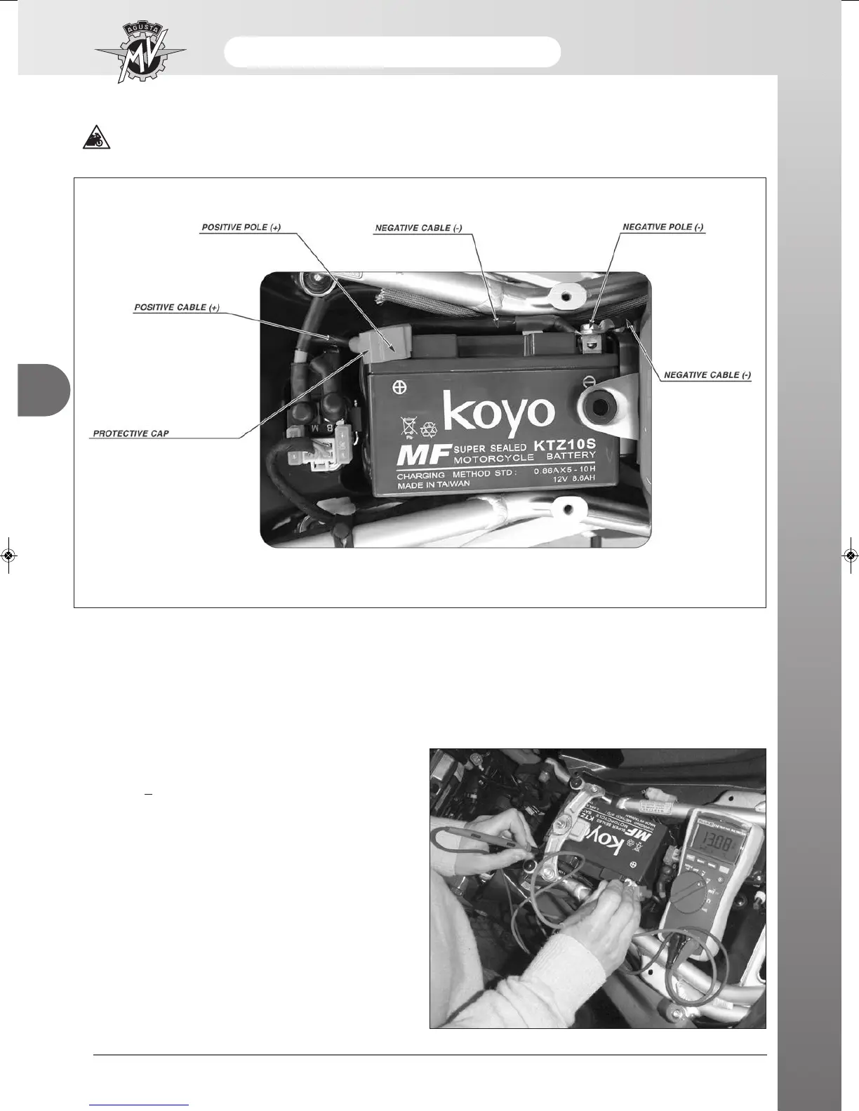 This is strictly necessary for this motorcycle as the battery is positioned horizontally, as shown