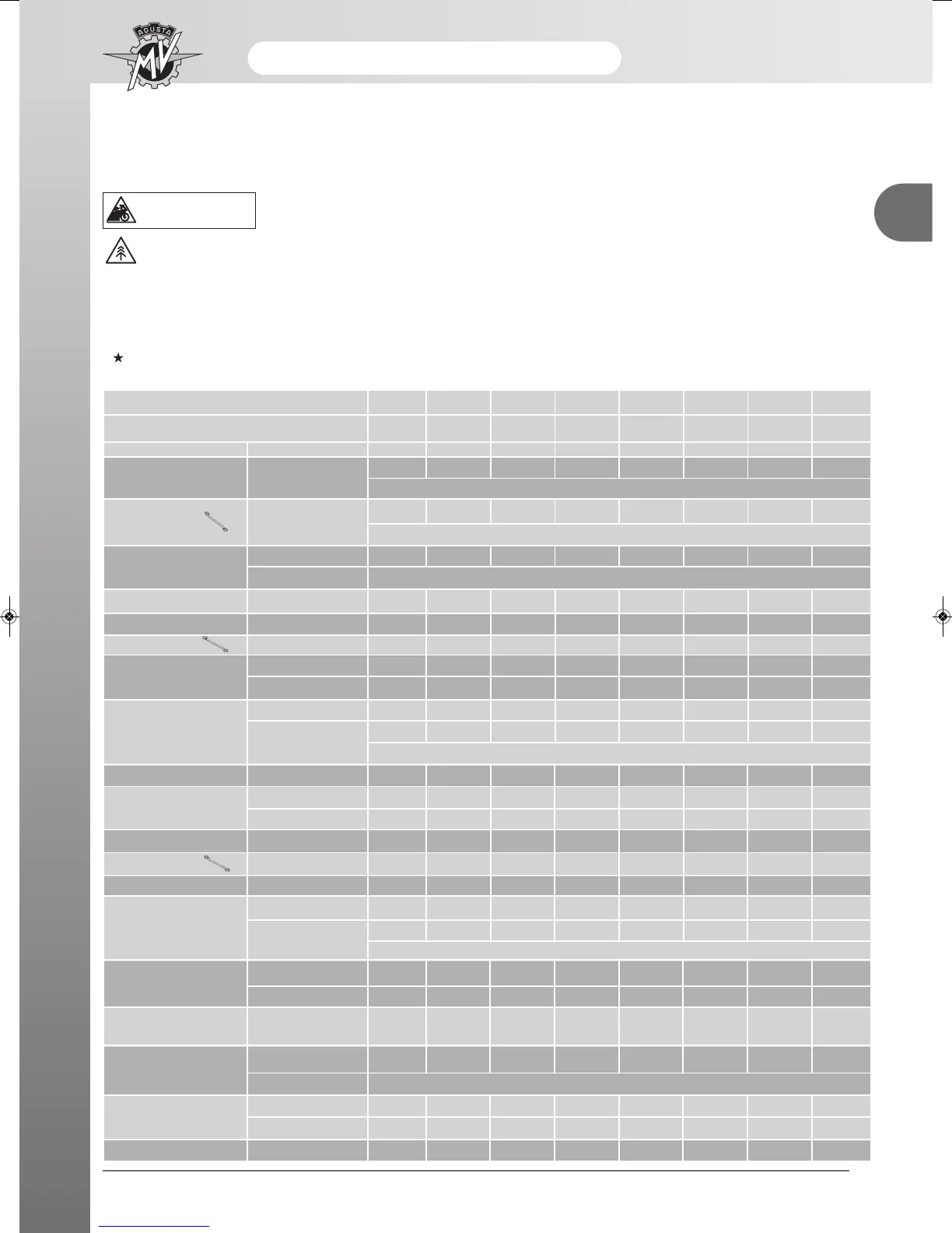 The table that follows indicates the recommended intervals between periodical maintenance operations.