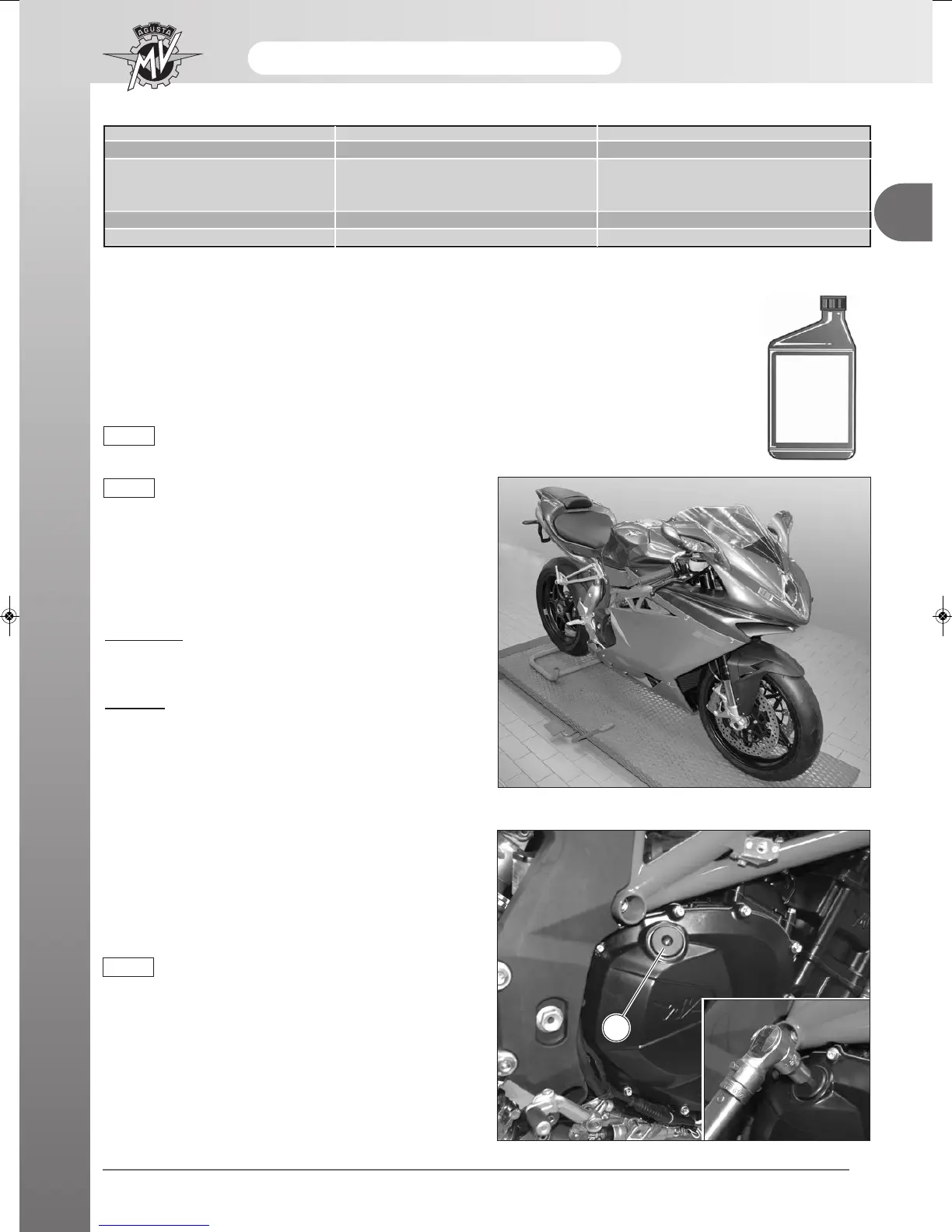available, MV Agusta suggests using completely synthetic oils with characteristics equal or