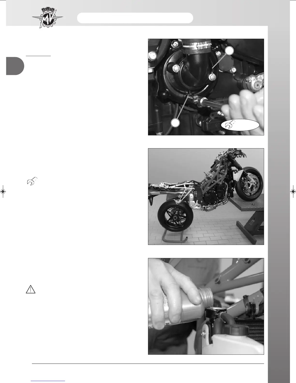 n Remove the coolant discharge screw 1 situated