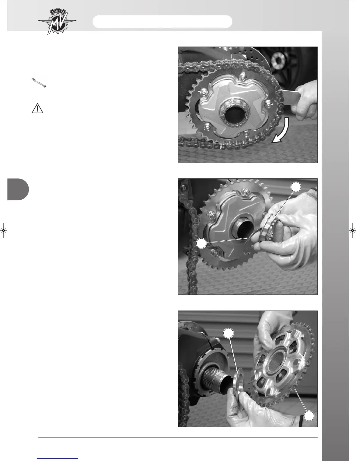 Remove the rear sprocket unit (3) and the spacer ring