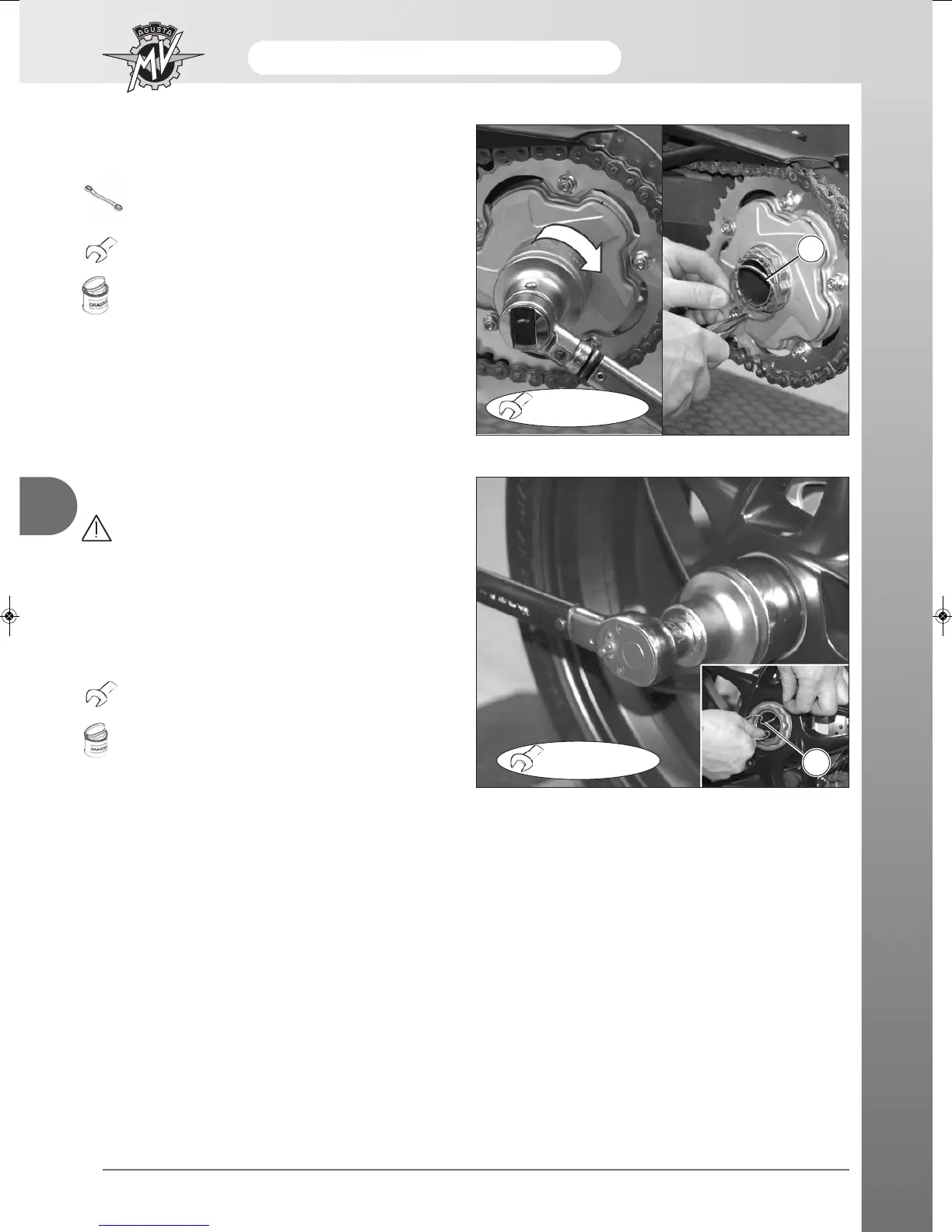 Tighten the wheel axis nut to the prescribed torque