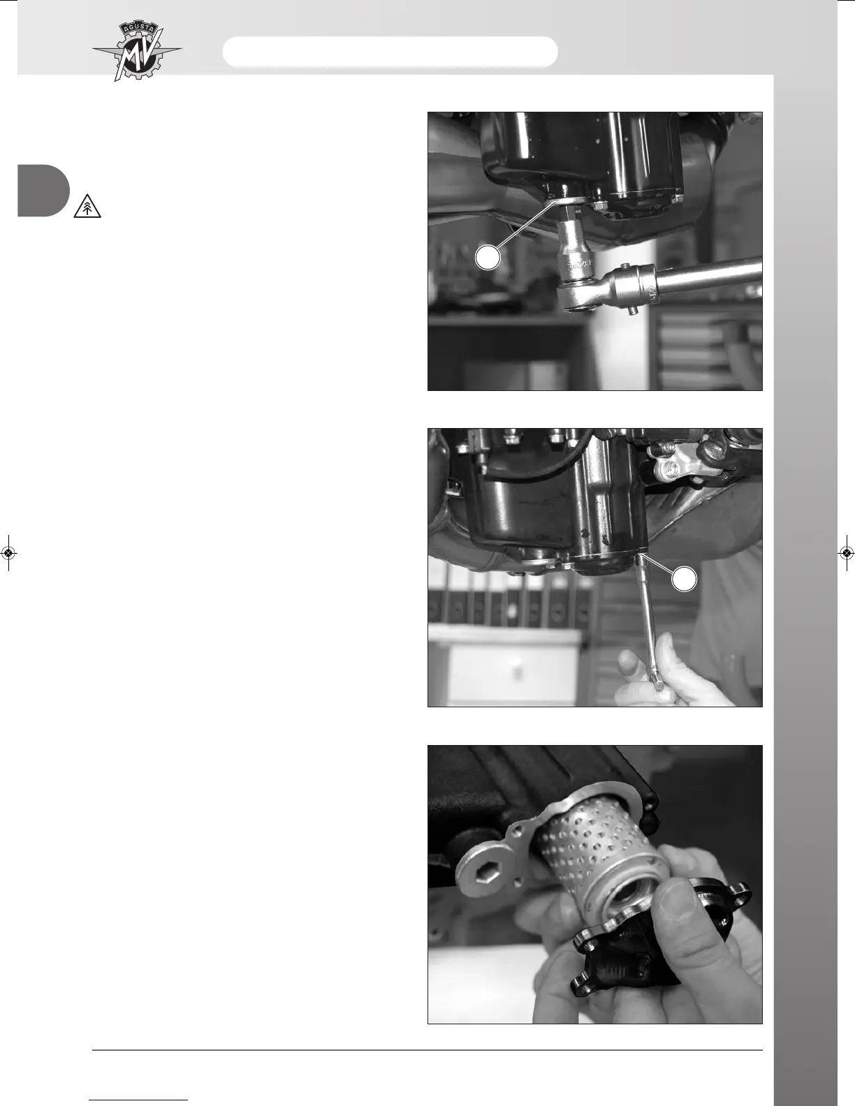 Remove the 4 fixing screws (2) of the oil filter cover.