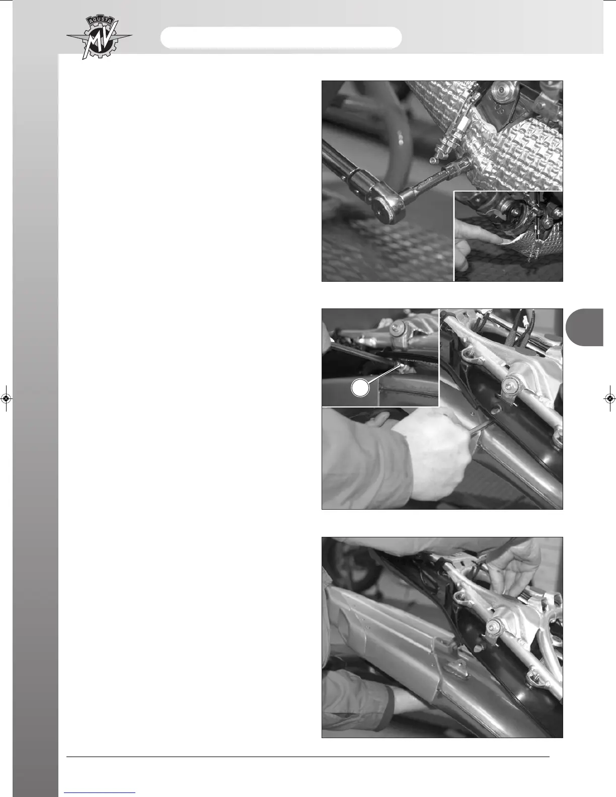 Lower the rear part of the silencer unit by removing the