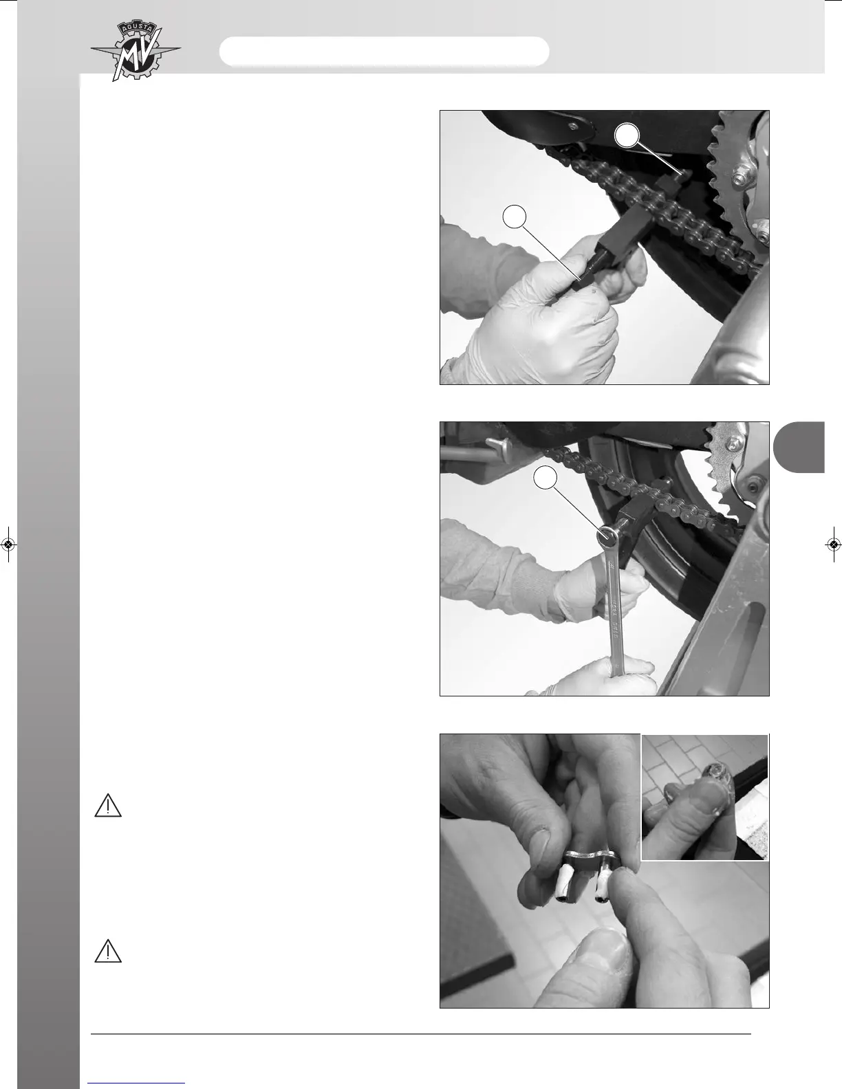 Screw the bolt (1) until the pin is out of the chain plate