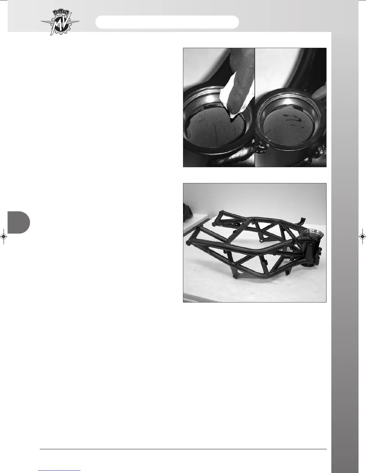 Carefully clean the seats of the steering bearings.