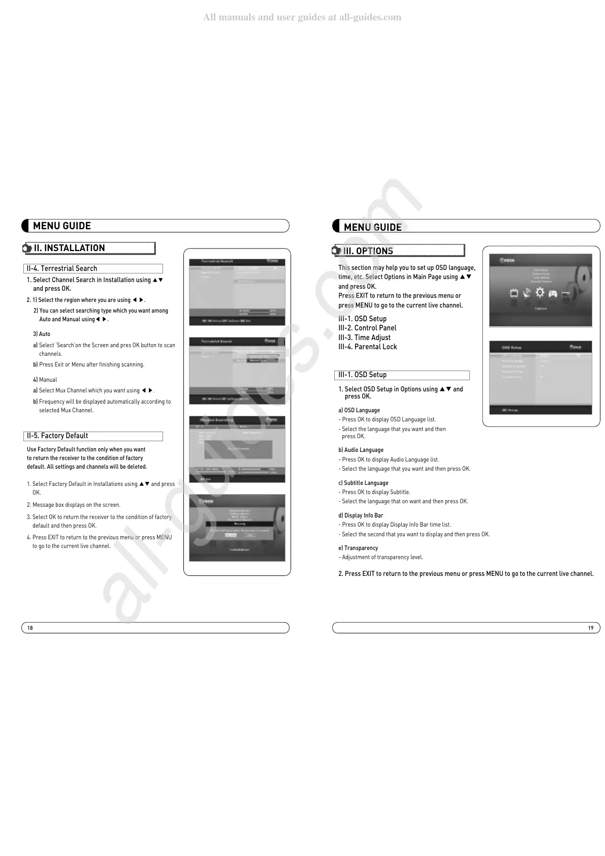 2. Press EXIT to return to the previous menu or press MENU to go to the current live channel.