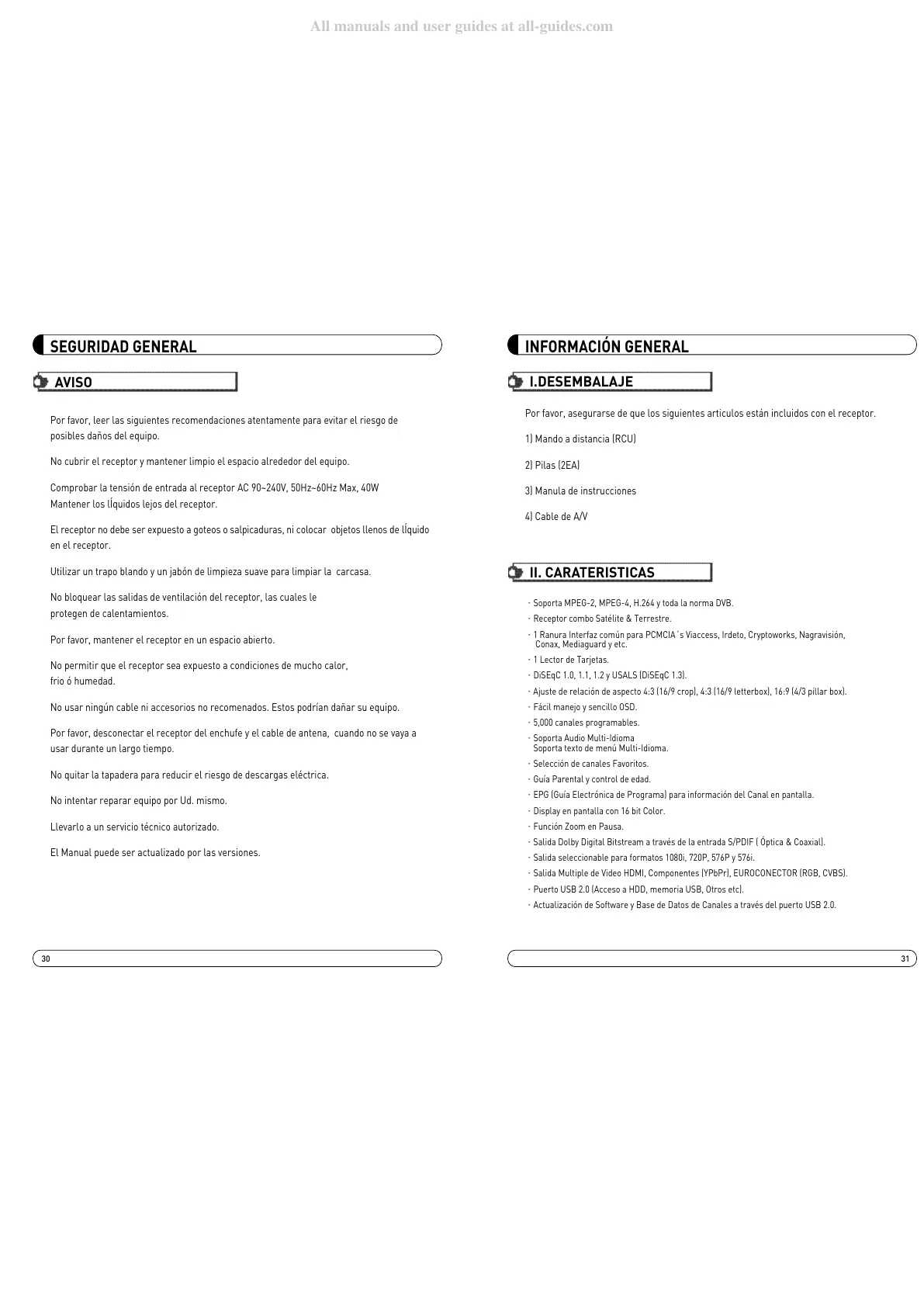∙Soporta MPEG-2, MPEG-4, H.264 y toda la norma DVB.