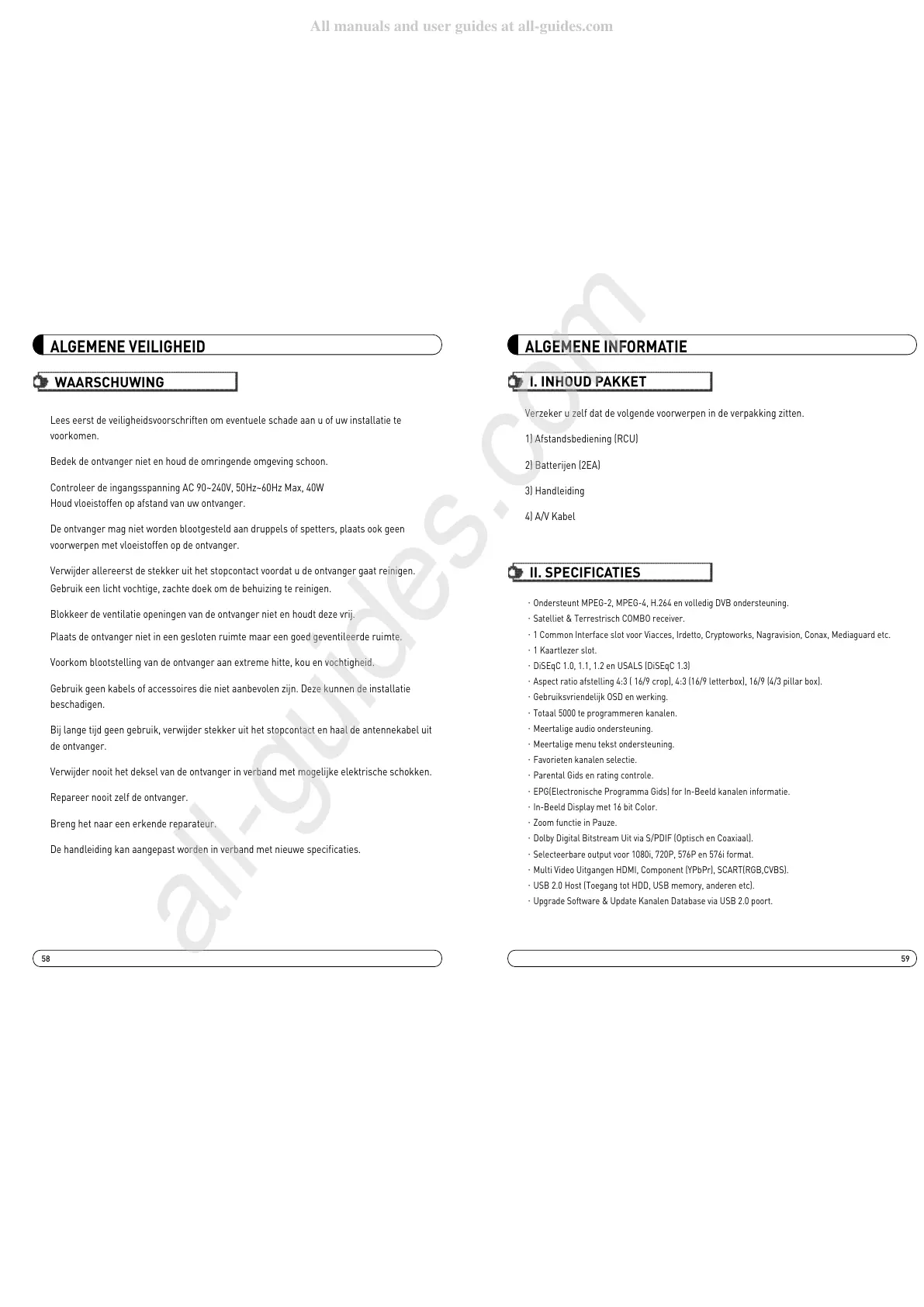 Verwijder nooit het deksel van de ontvanger in verband met mogelijke elektrische schokken.