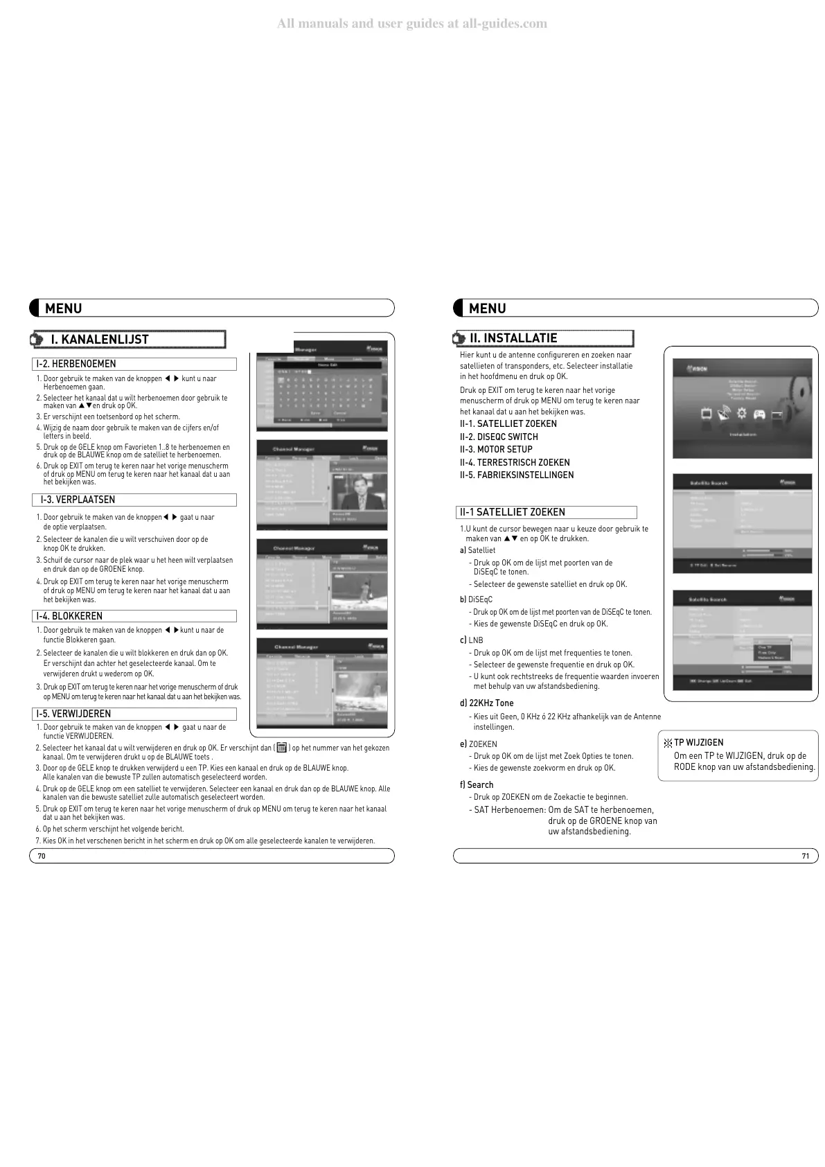 kanalen van die bewuste satelliet zulle automatisch geselecteert worden.