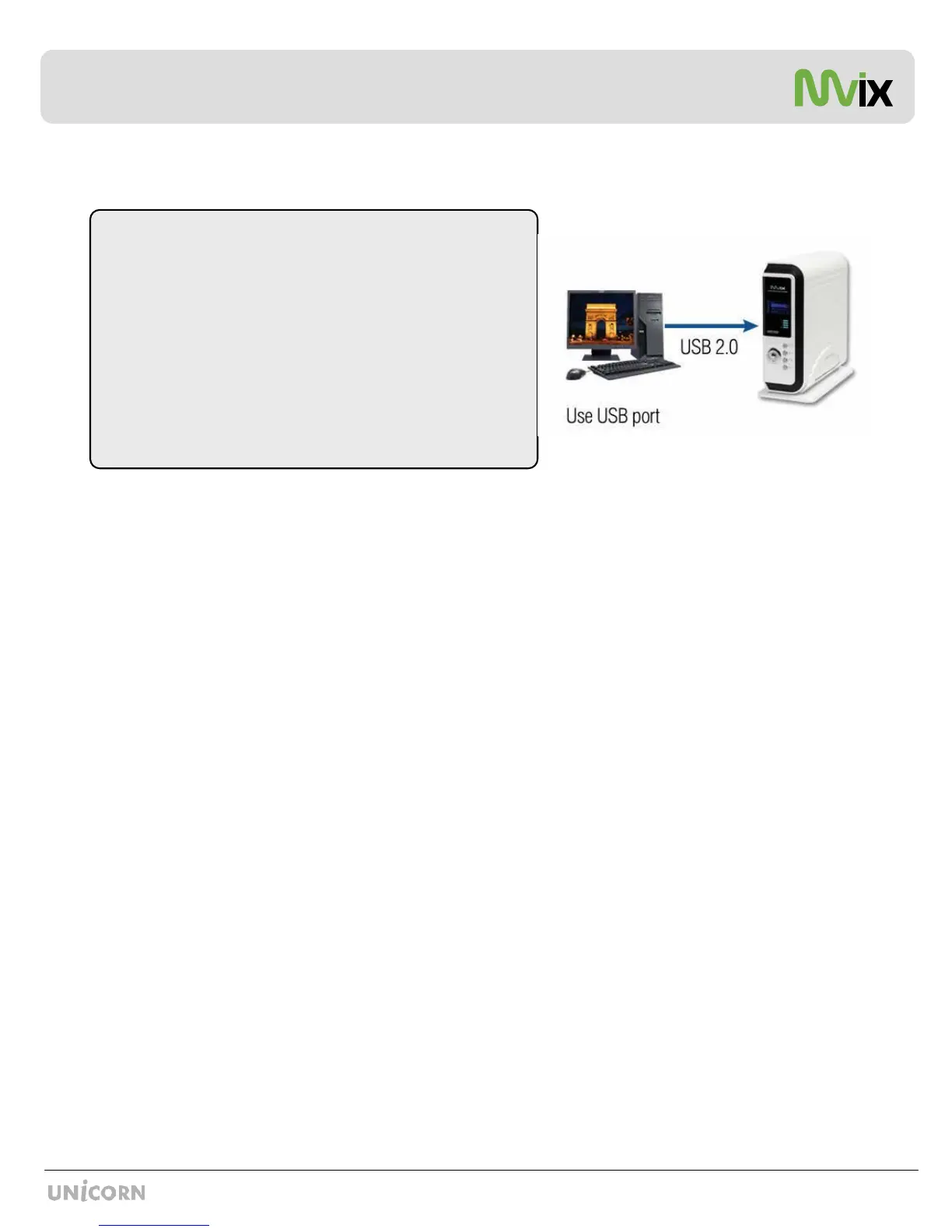 2.5” external HDD to enable its use with the Mvix player.