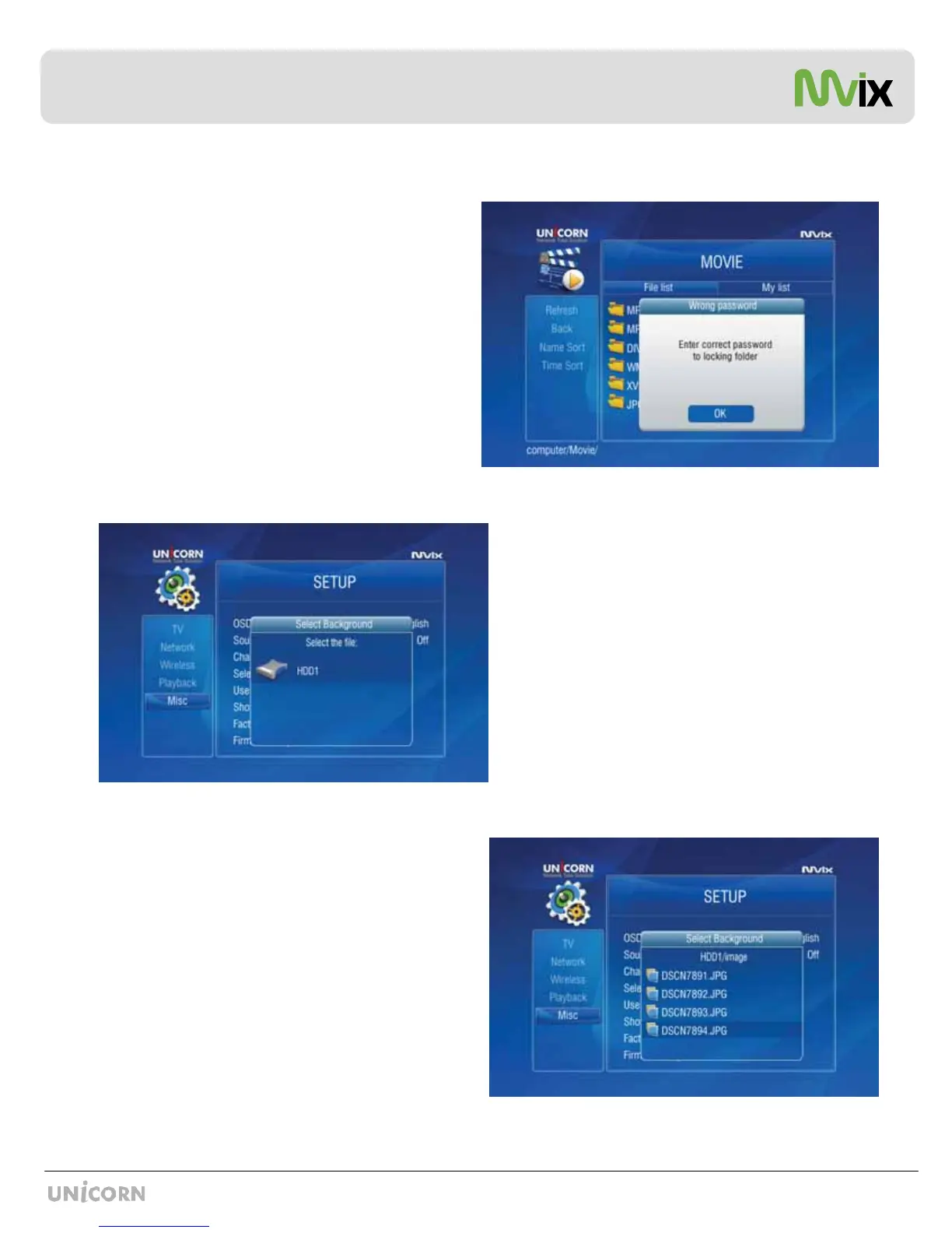 1. Using the arrow-buttons on the Mvix Remote, navigate to the
