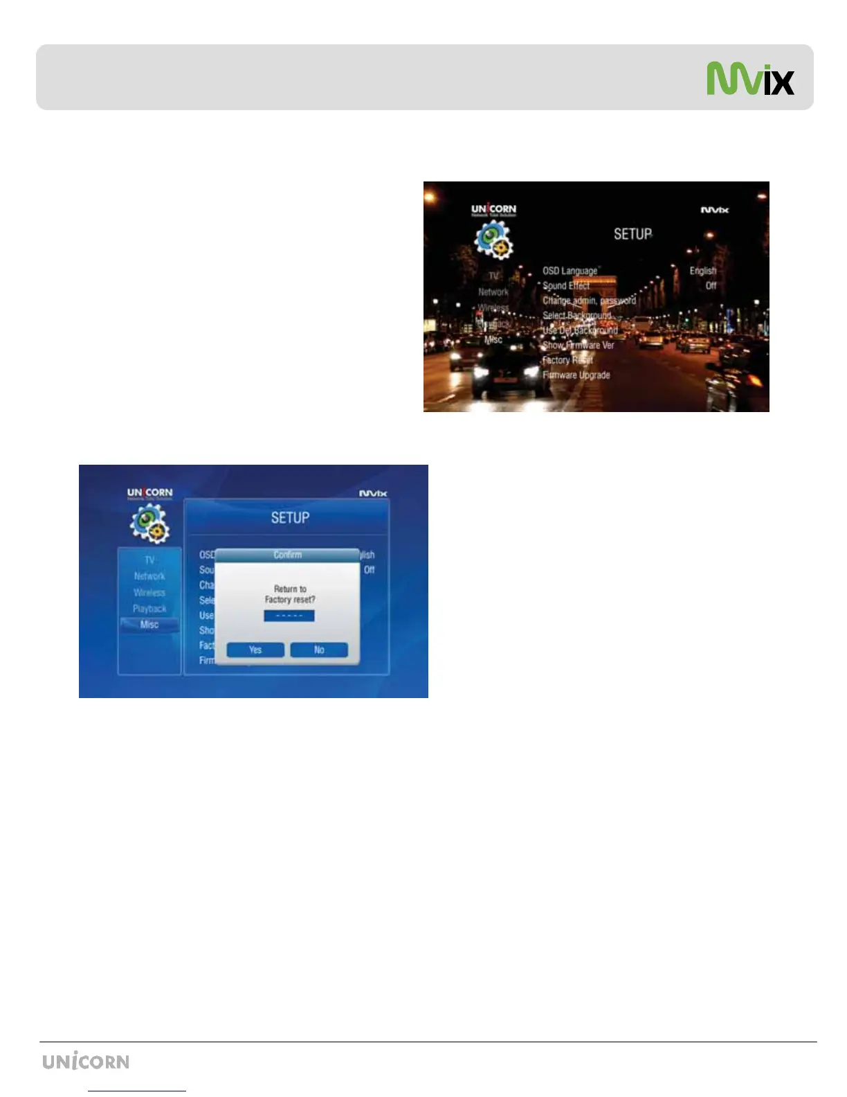 1. Navigate to MISC Setup menu using the Mvix Remote, select