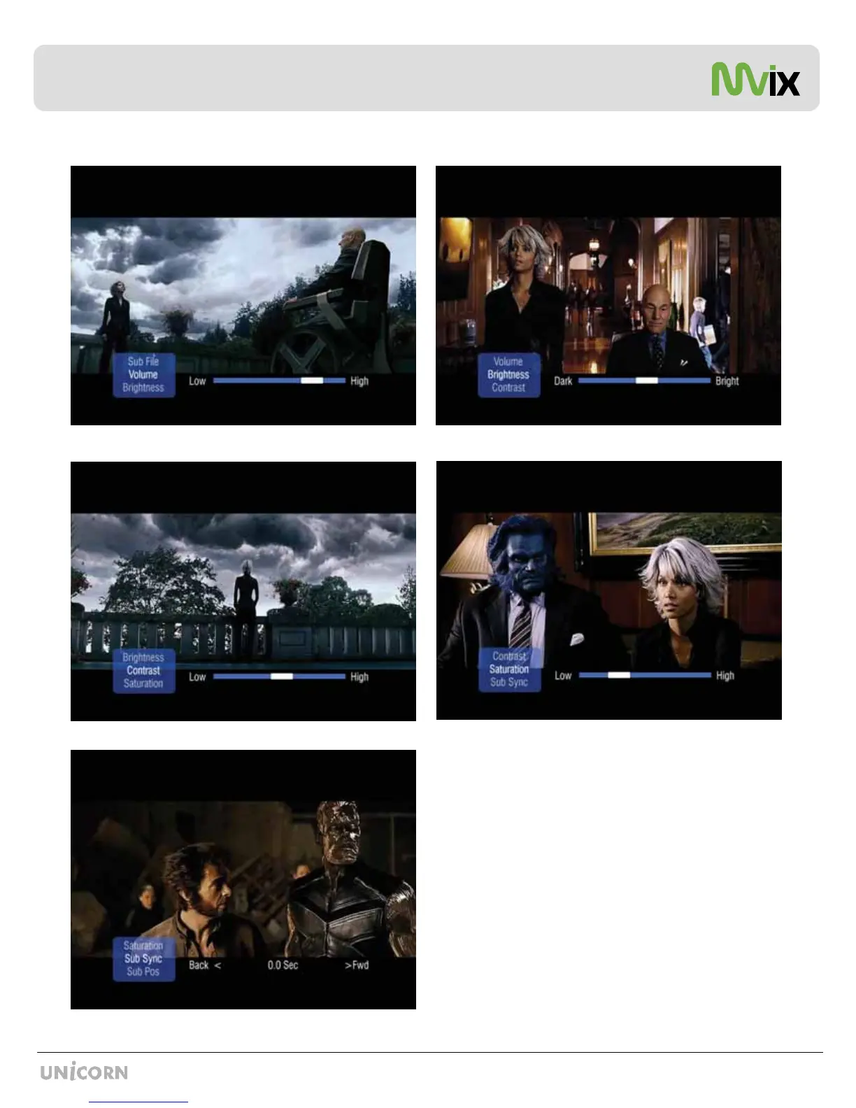 During Video playback, Press VOLUME button on the Remote to display the video settings float box. Use UP/DOWN arrow keys to