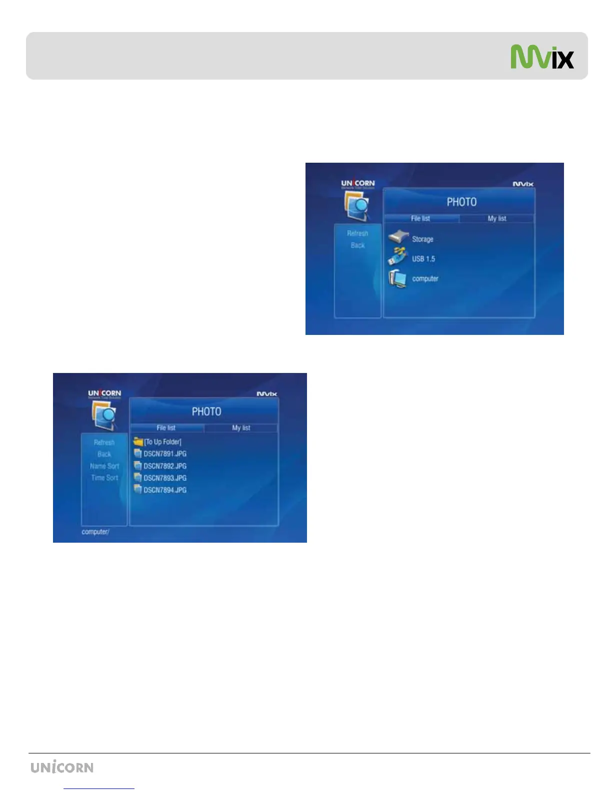 (via USB-Host) or local IDE-HDD (installed inside the Mvix player)