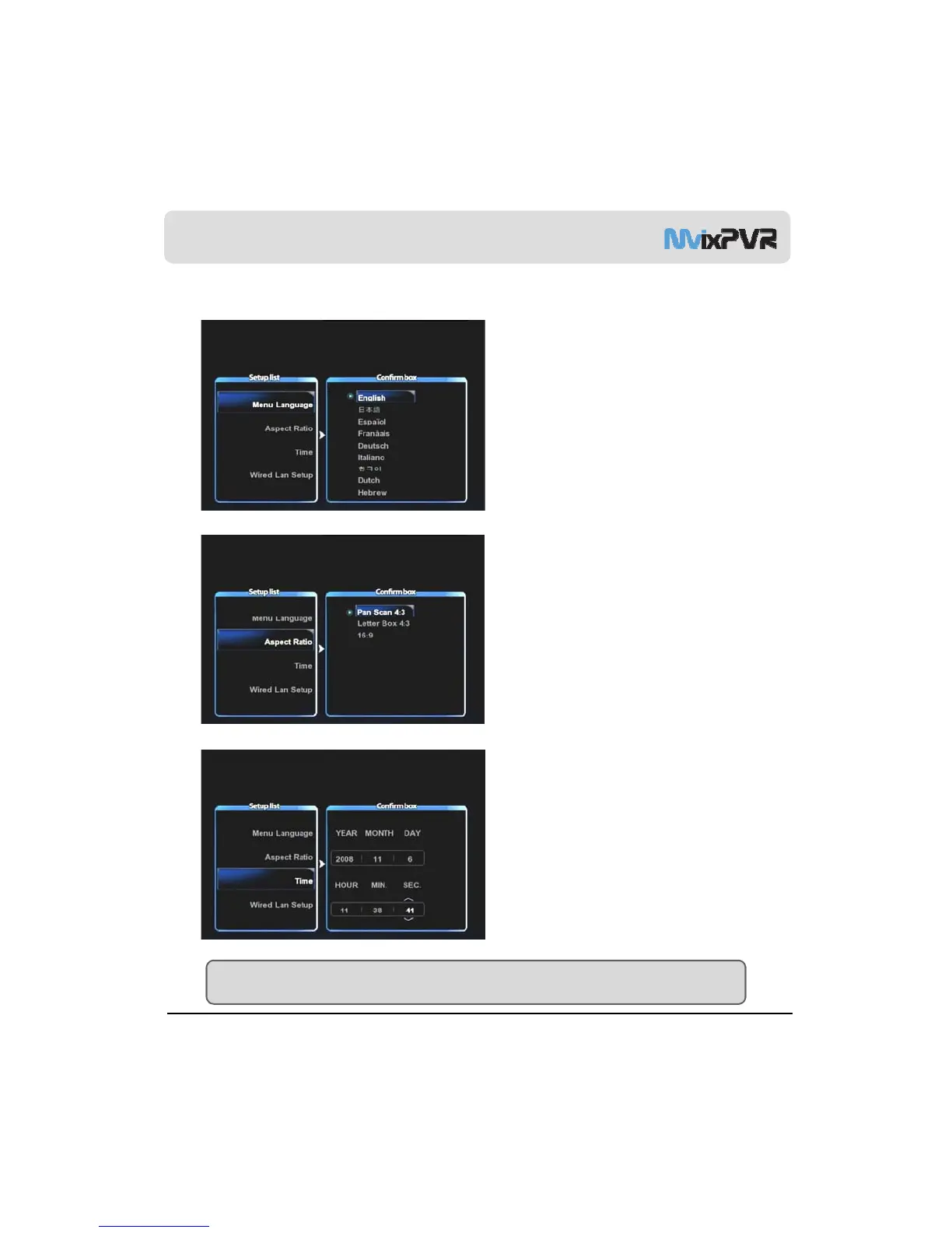 2) Language/ Resolution/ Time Setting in Wizard