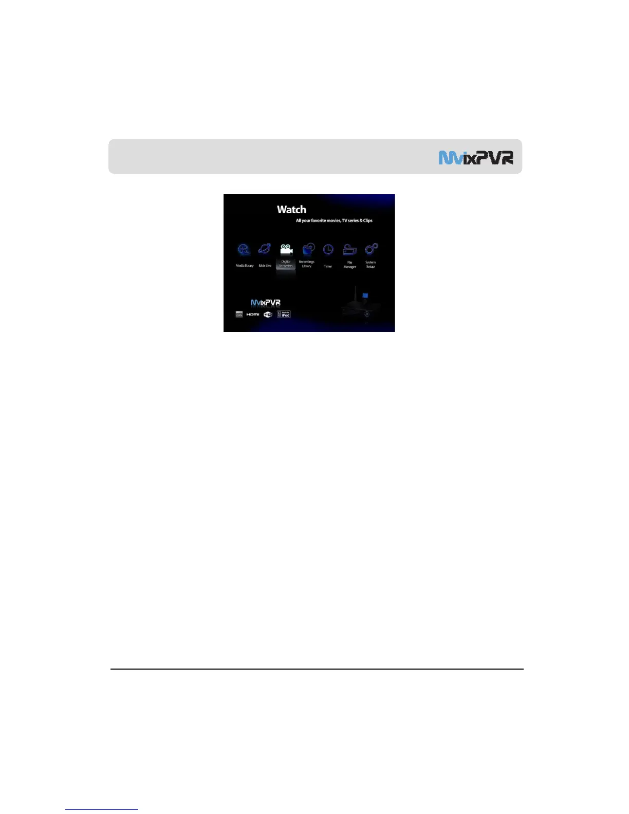 time shift function. MvixPVR supports multi-threading function that enables you to use the MEDIA LIBRARY
