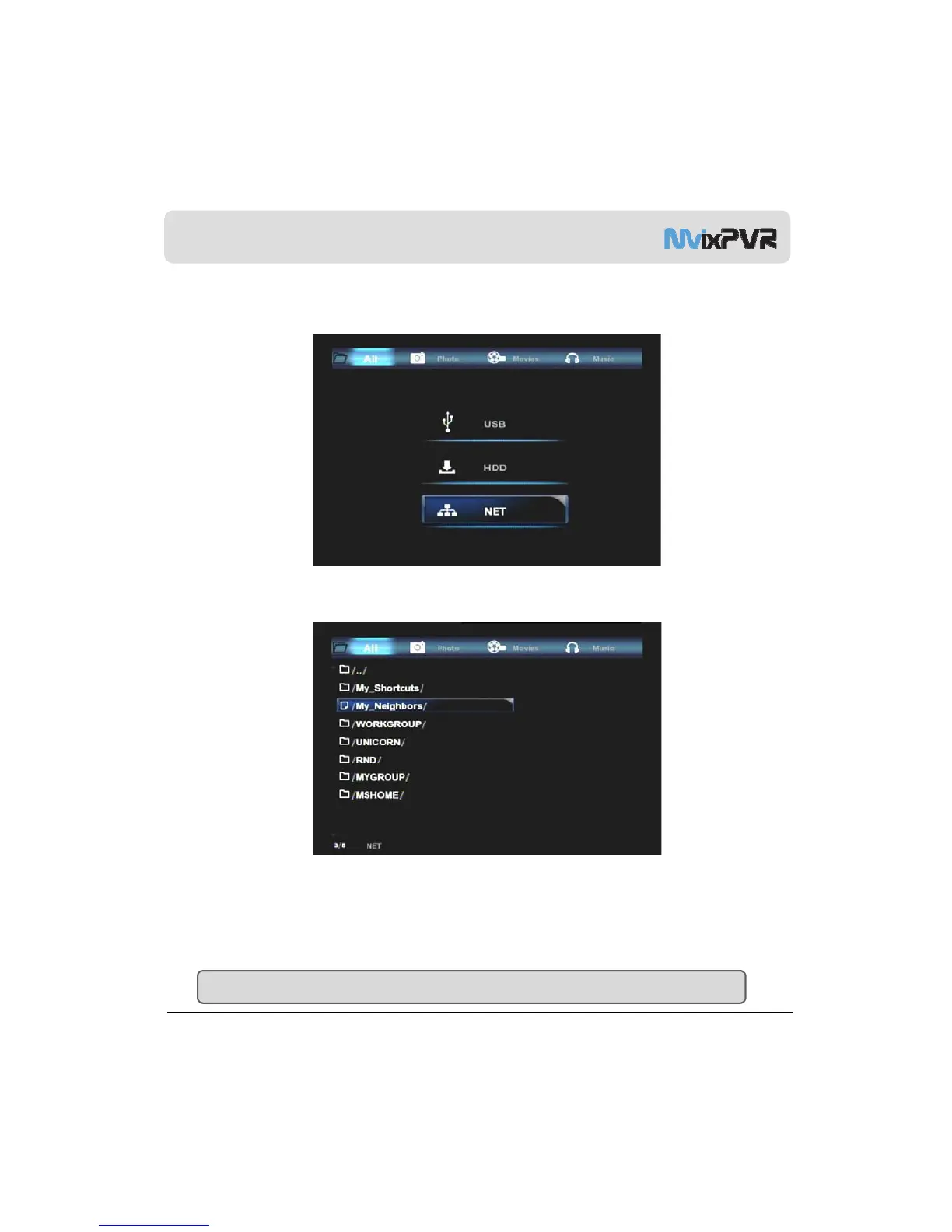 1. Access net in the first screen of MEDIA LIBRARY.