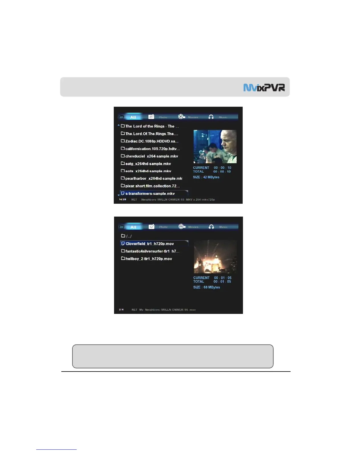 displayed, install MvixFTS program in PC. In MvixPVR, play the movie located in PC.
