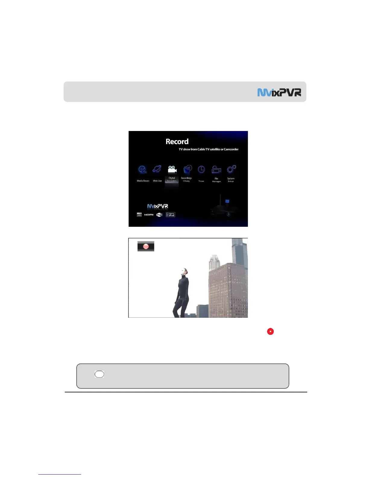 remote controller to start recording. Each time the button is pressed, recording time is designated as 30/ 60/ 90/