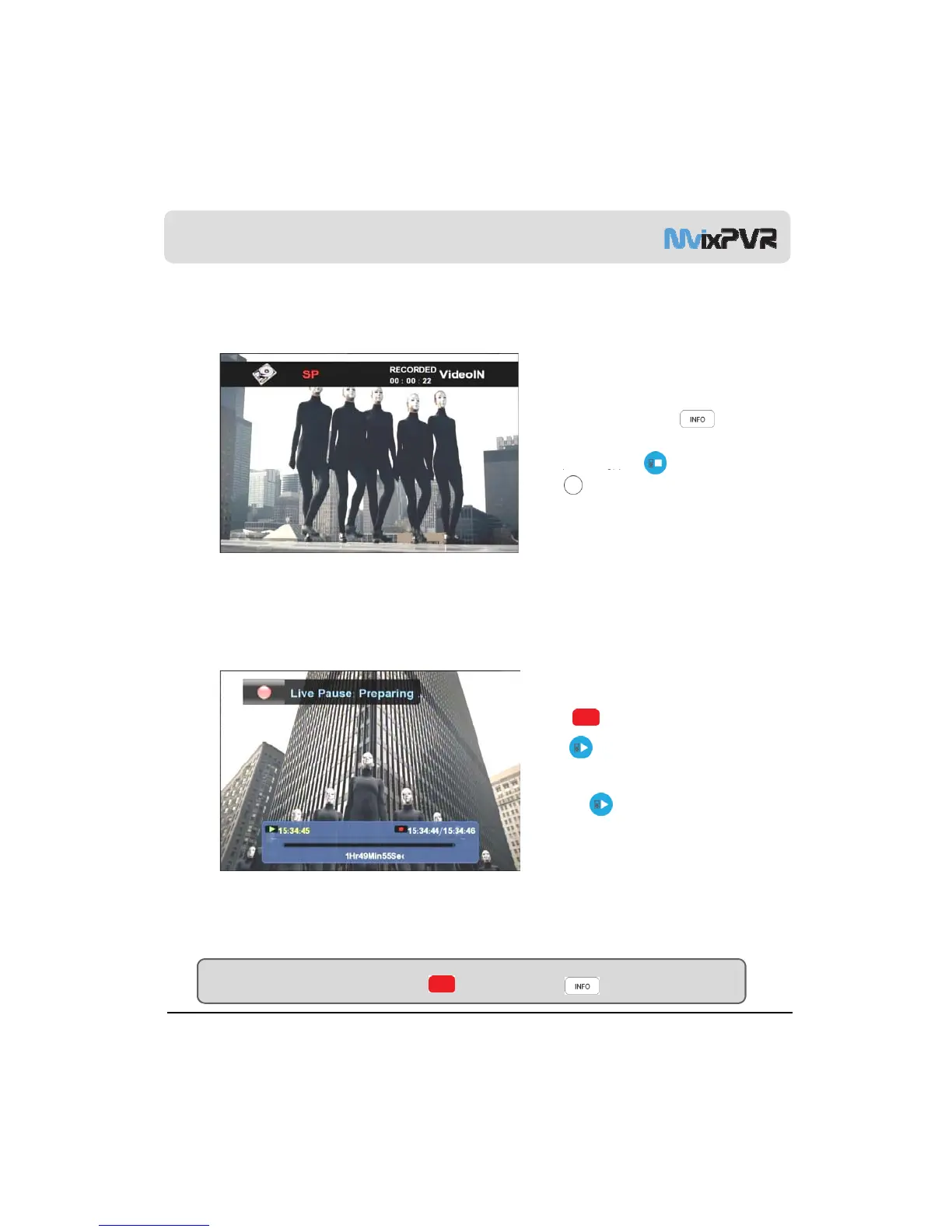 To check recording status, press INFO in remote