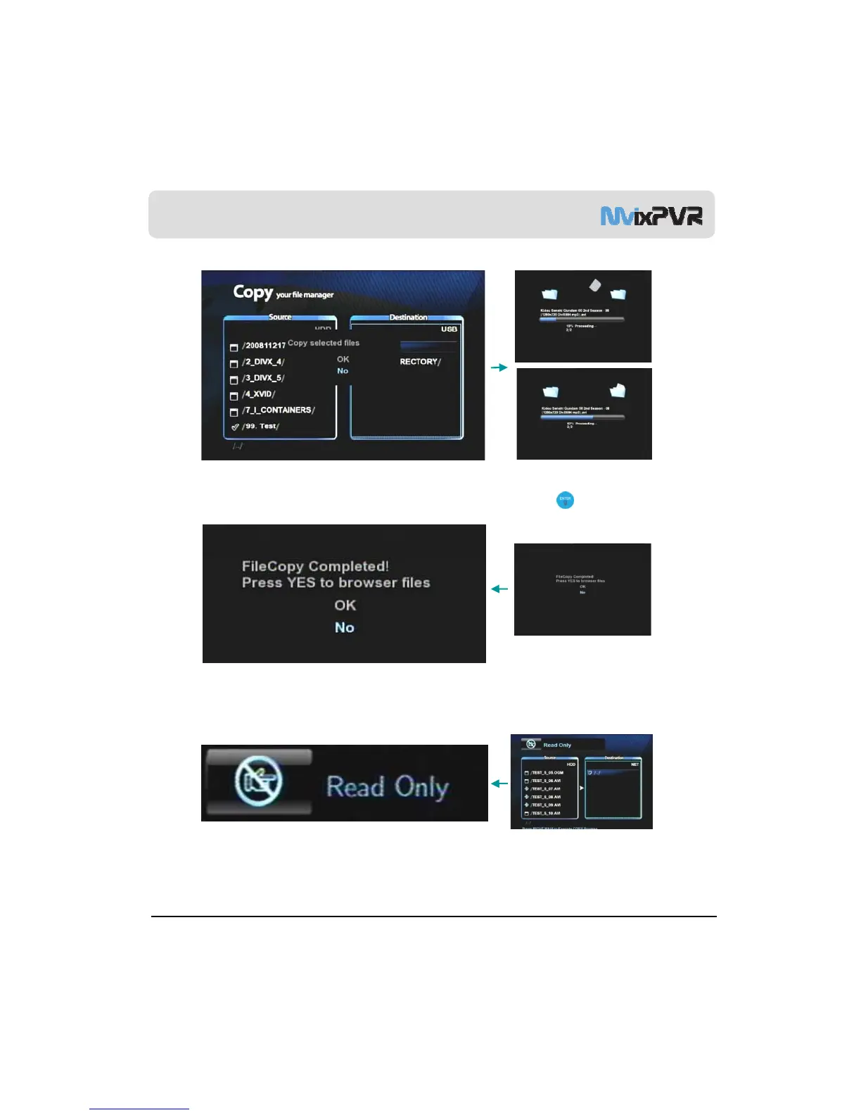controller to display a window asking for the status to proceed copy. Select OK and press ENTER in remote controller.