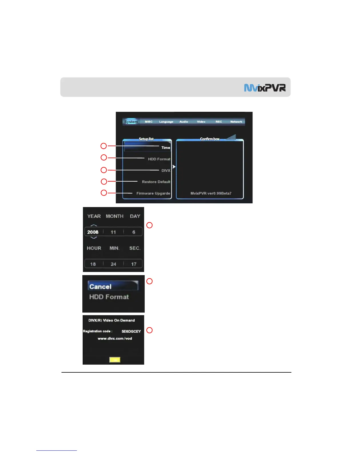 Set time of MvixPVR that serves as the basis of using TIMER function.
