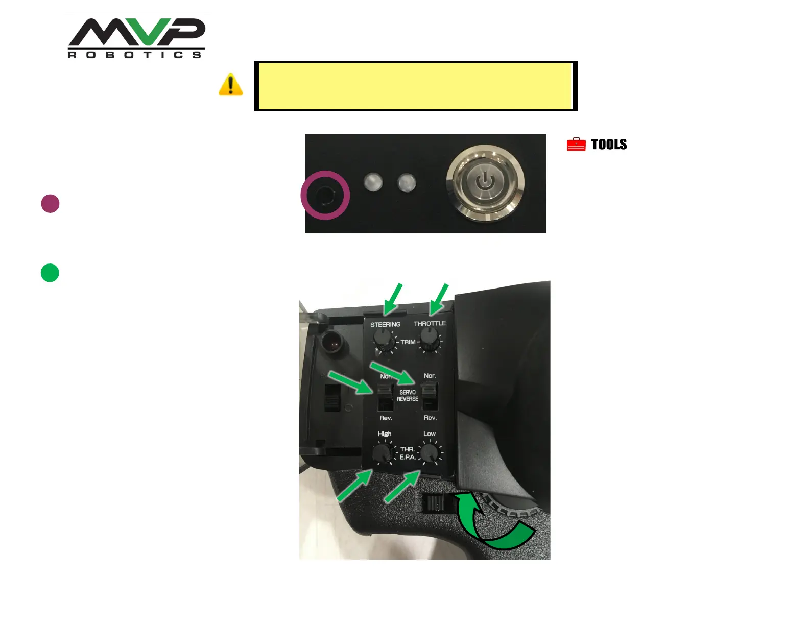 Set the transmitter controls as shown.