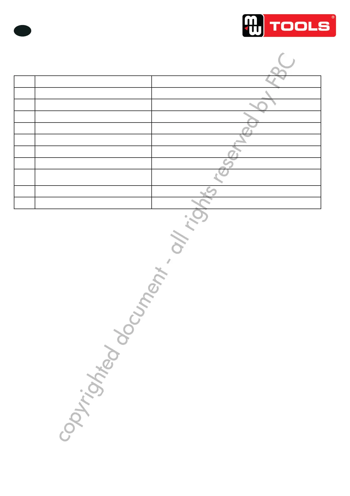 9 Air pressure valve Controls the working pressure of compressed air, turn clockwise