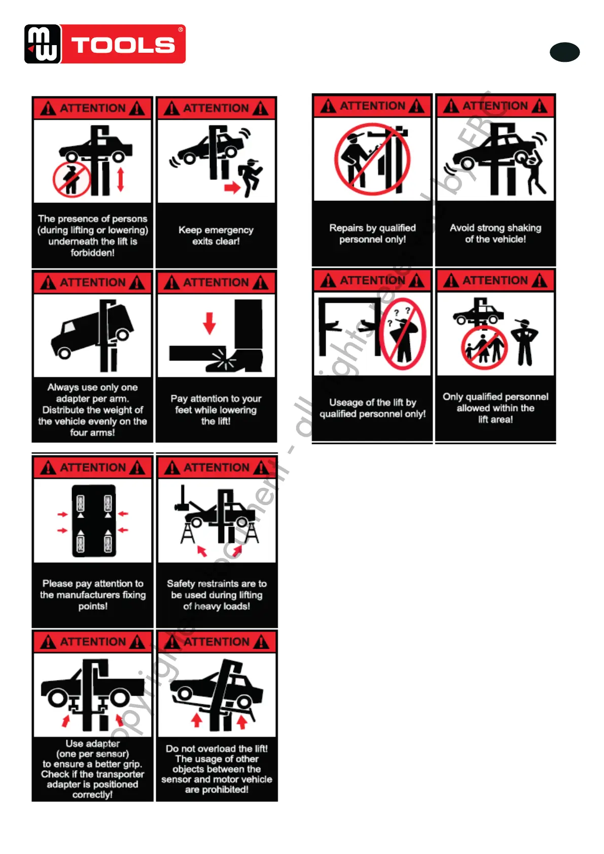 All safety warning signs attached on the machine are for the purpose of drawing the users attention to safety operation. The