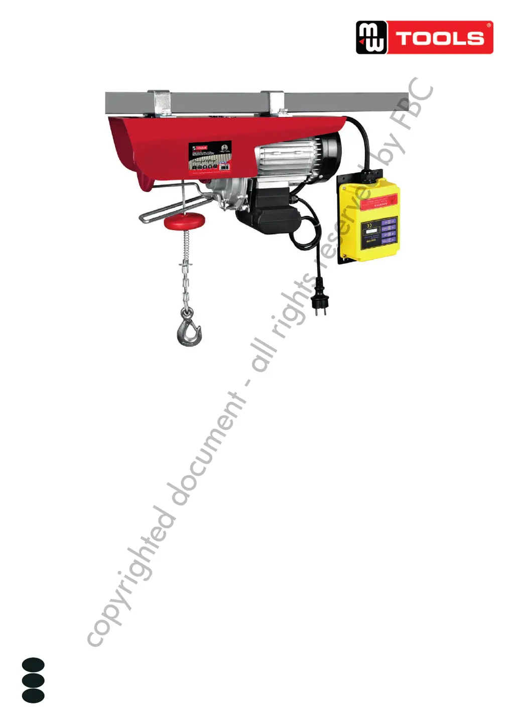 Your MW TOOLS Chain Hoists motor might not be turning on for several reasons: it may not be plugged into the power supply, so ensure it is properly connected. The wires could be broken or ripped, requiring you to check and plug them in again. There might be a switch malfunction, in which case you should repair or replace the switch. The capacitor could be burned through, necessitating a capacitor replacement. The end-switch may not have been reset or there could be a limit switch error, so check the end-switch and replace the limit switch if needed. Finally, the thermal switch might have a wire break; wait for the item to cool down or replace the thermal switch.