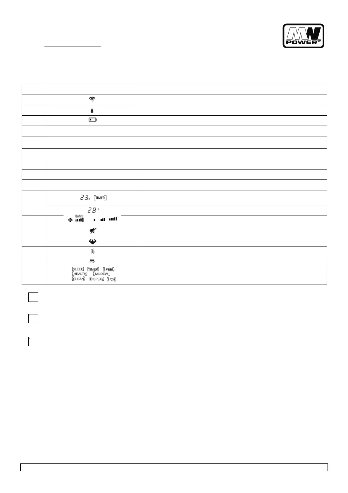 12 Fan speed indicator: auto/low/mid/high