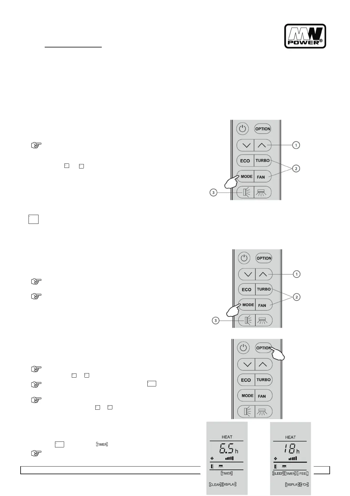 To activate the heating function HEAT, press the (MODE)
